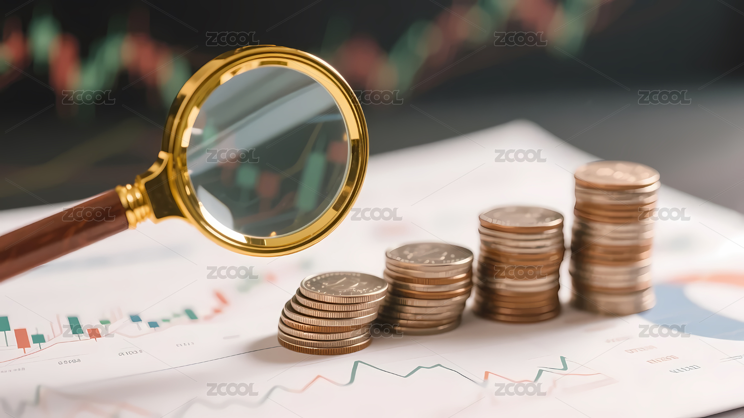 金币图表放大镜办公场景