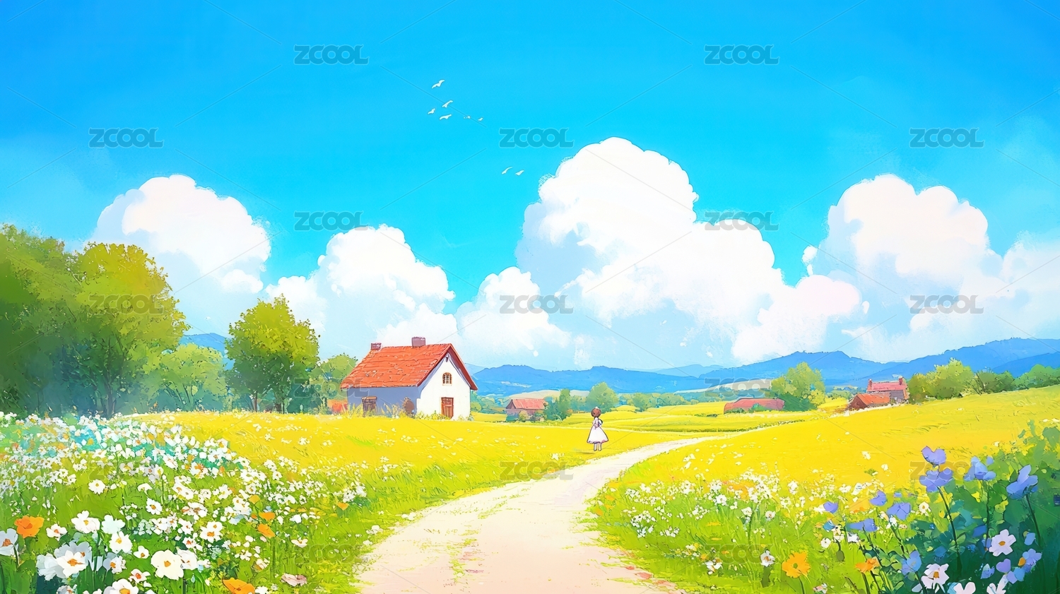 乡间田园小屋风景画