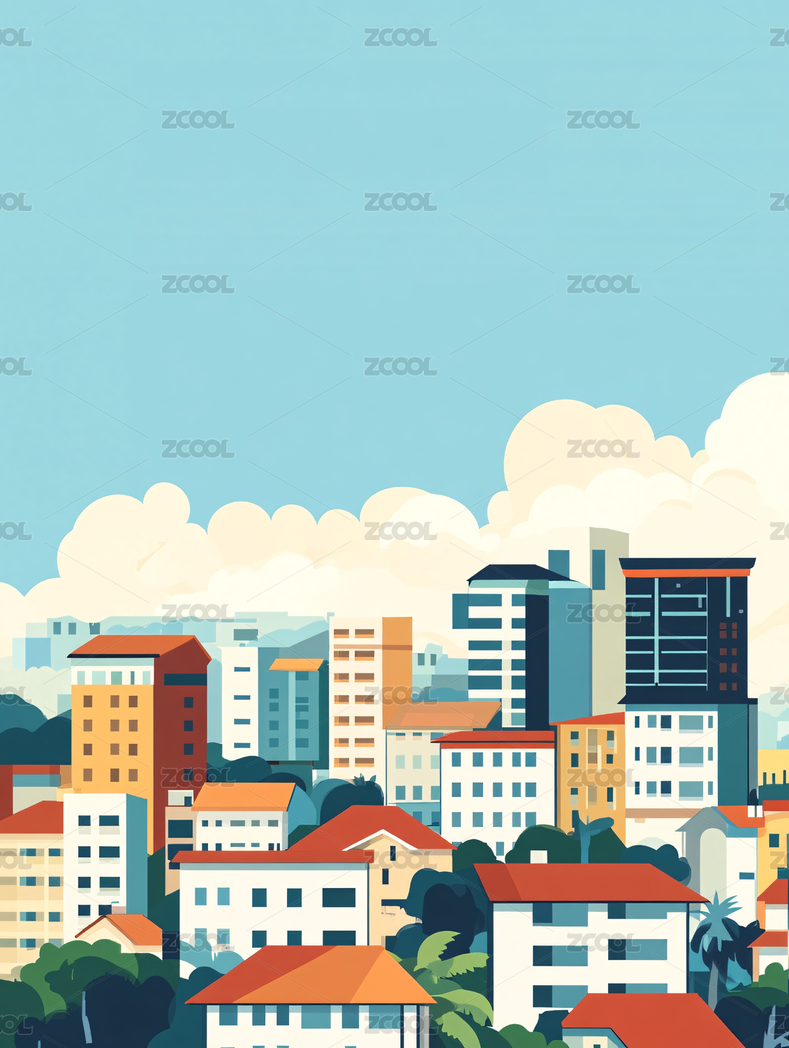 城市建筑群插画壁纸背景天空