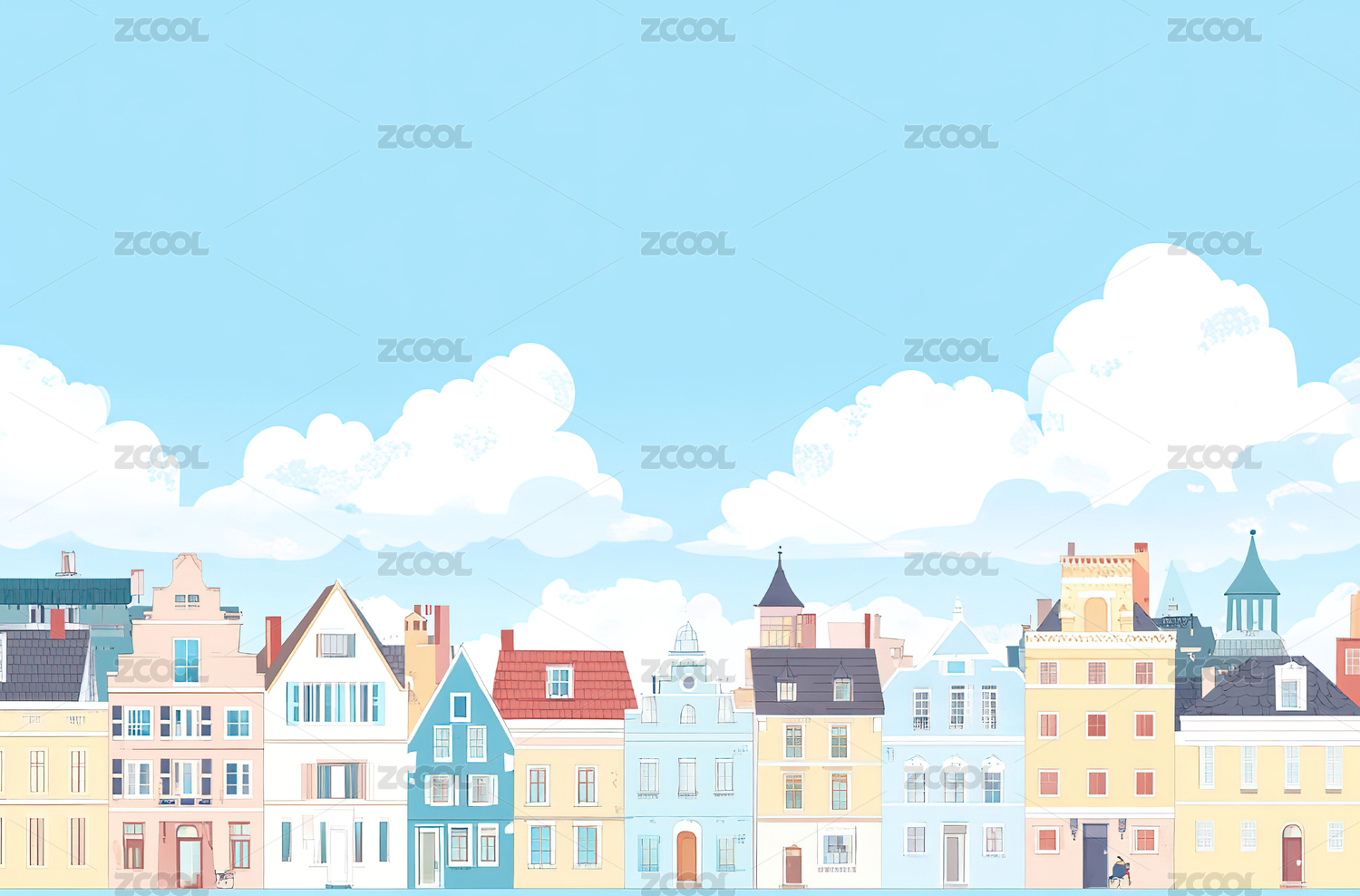 彩色房屋与蓝天白云