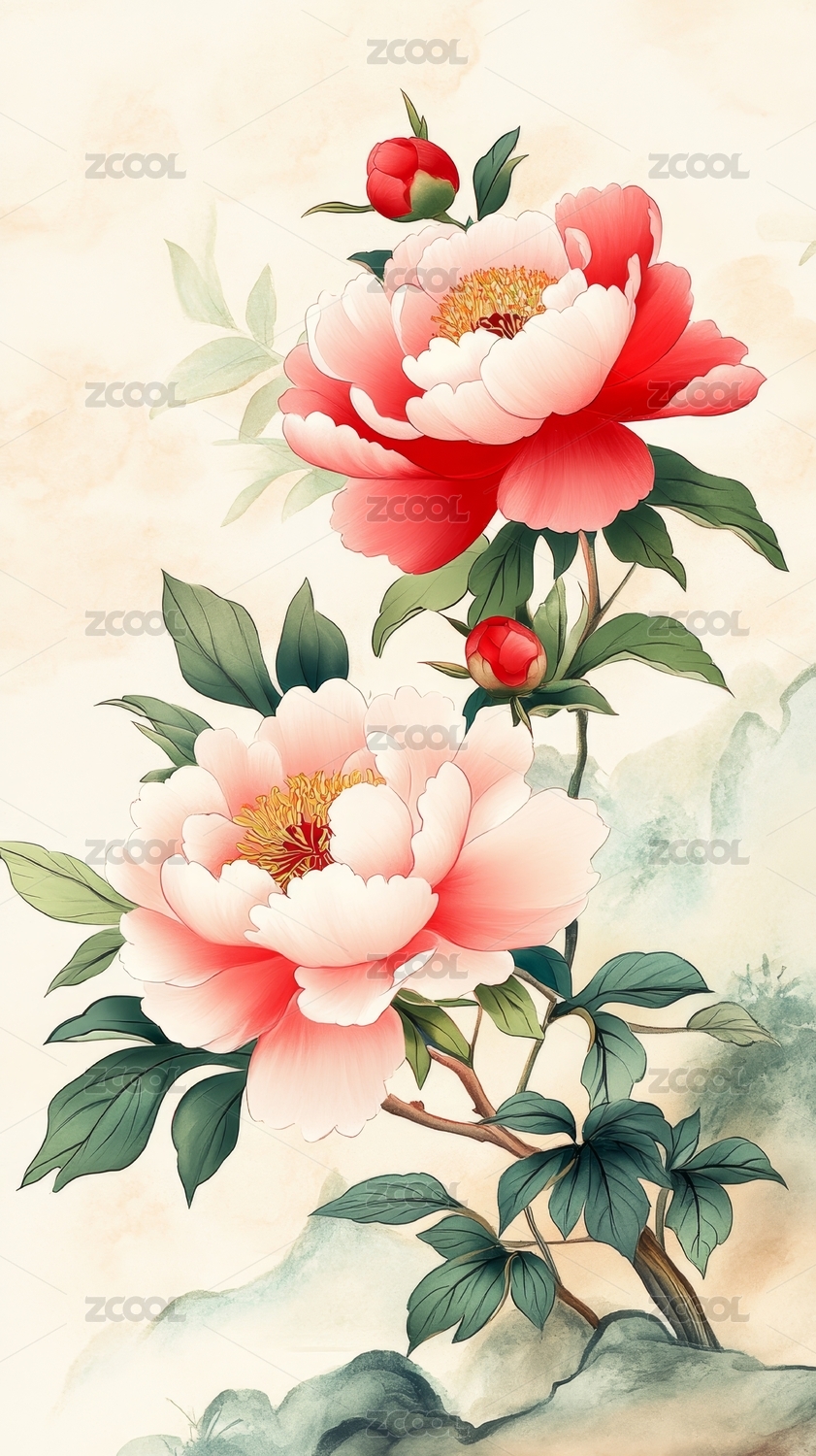 水彩风的牡丹插画