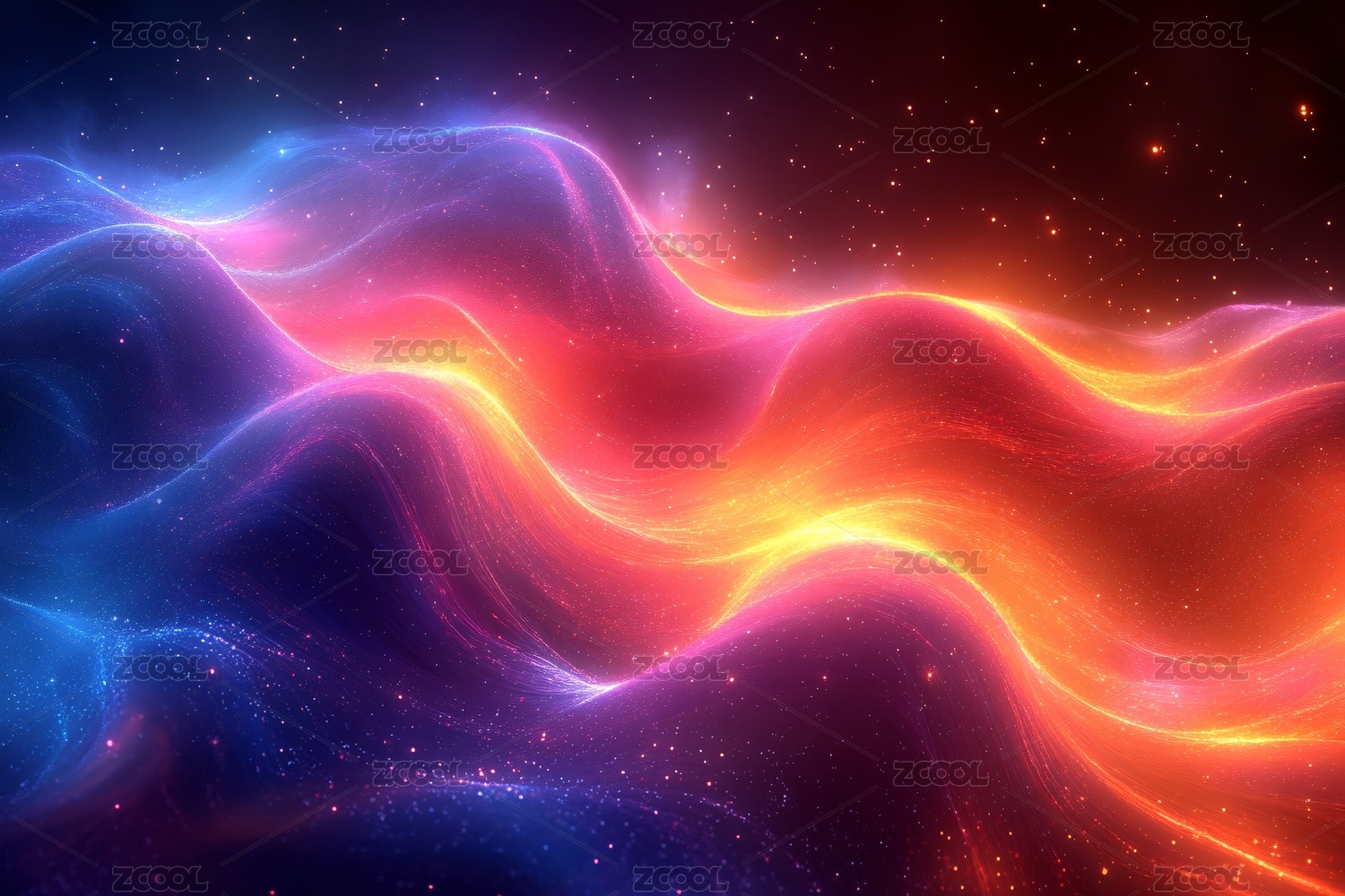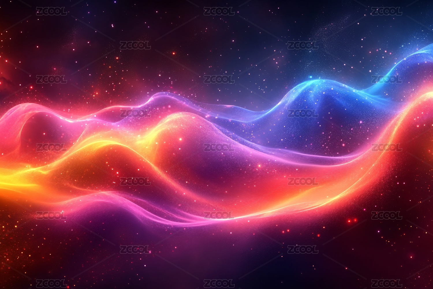 梦幻炫彩星空波浪背景
