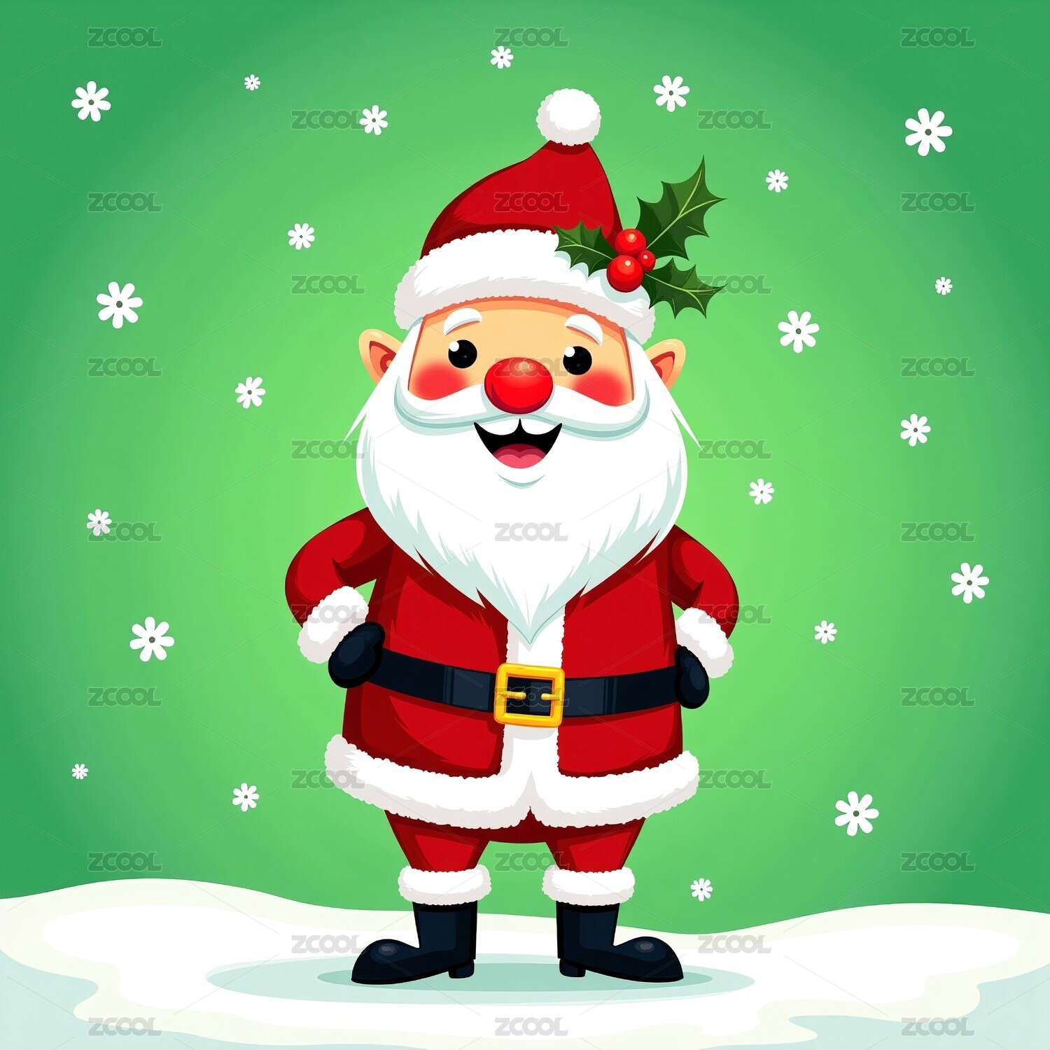 圣诞节卡通圣诞老人红色贺卡插画背景