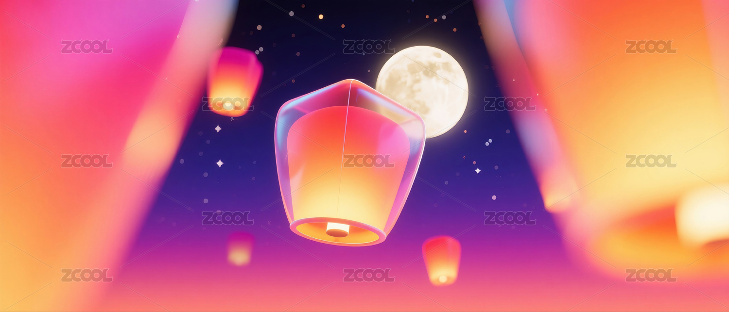 月夜孔明灯创意场景