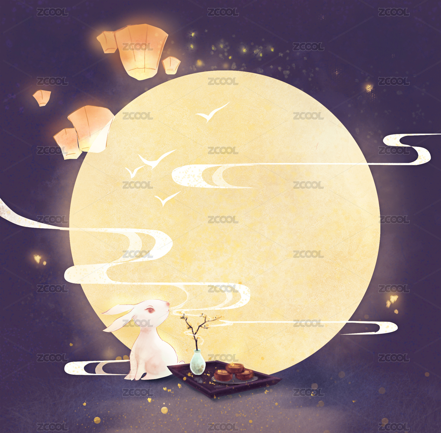 中秋节圆月和玉兔插图