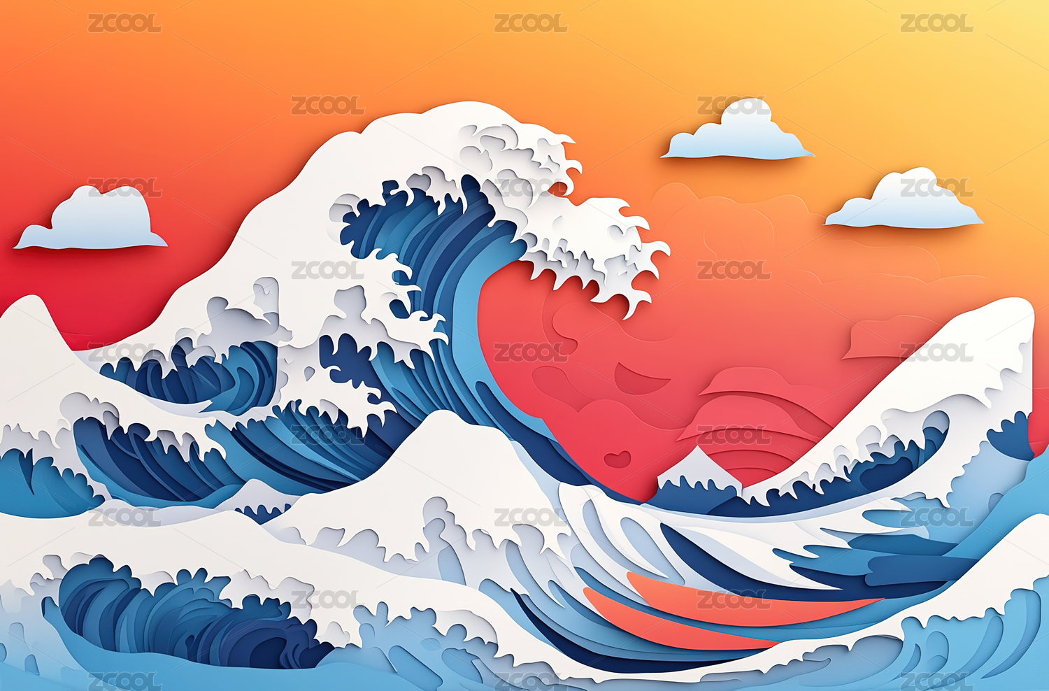 水花海浪背景插画夏天凉爽概念大暑节气插图