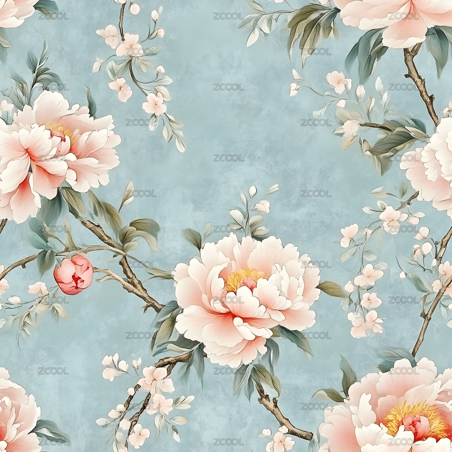 水墨牡丹盛开花卉中国风复古布料底纹图案
