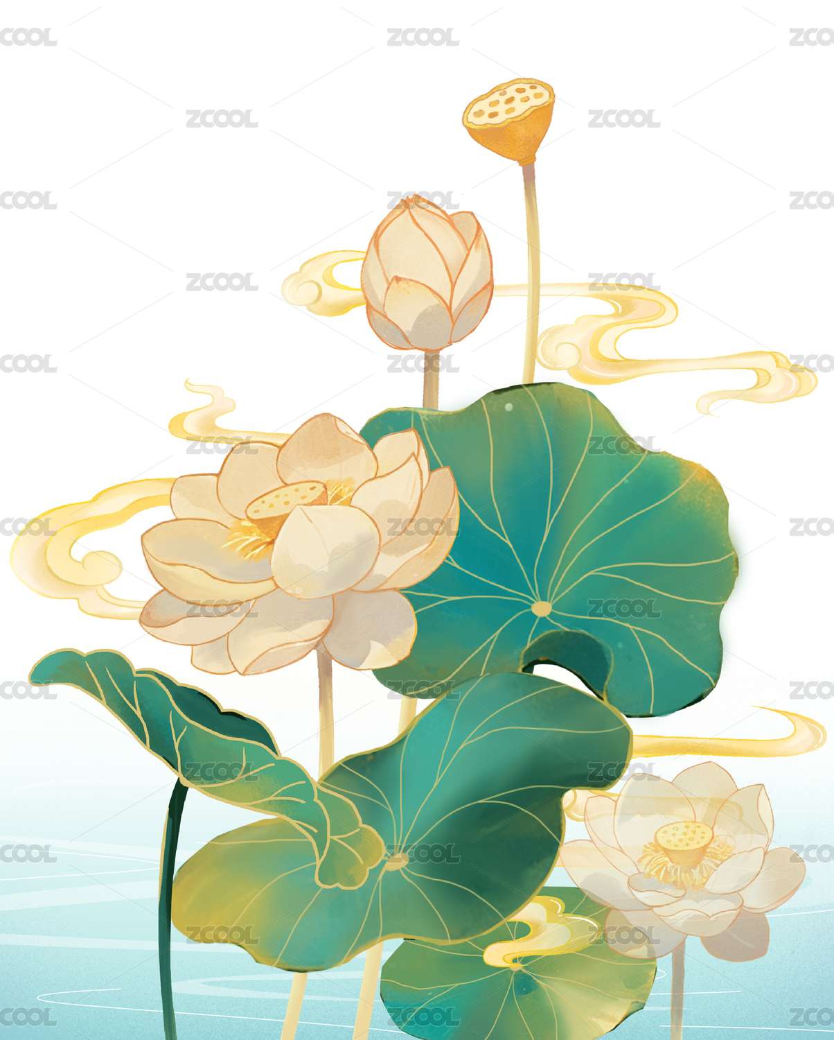 荷花,荷叶,荷塘,莲蓬,莲藕,祥云,池水,水面,波纹,背景