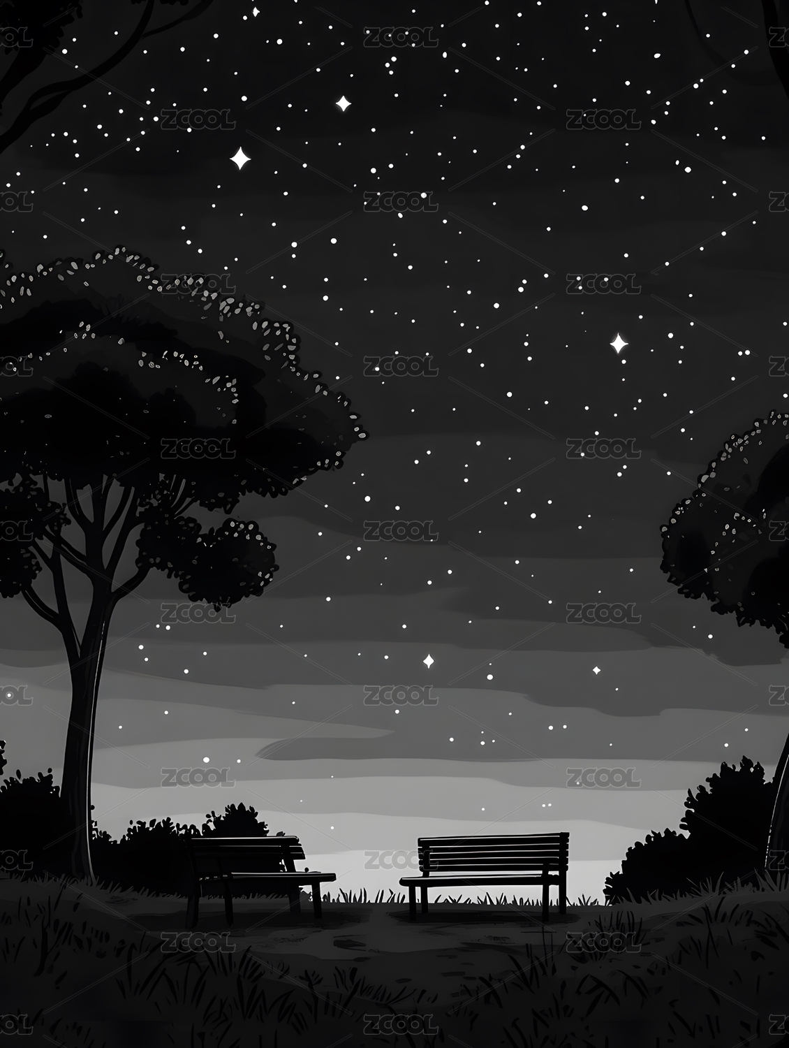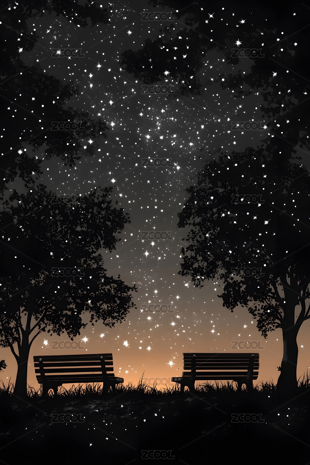星光下的城市公园剪影