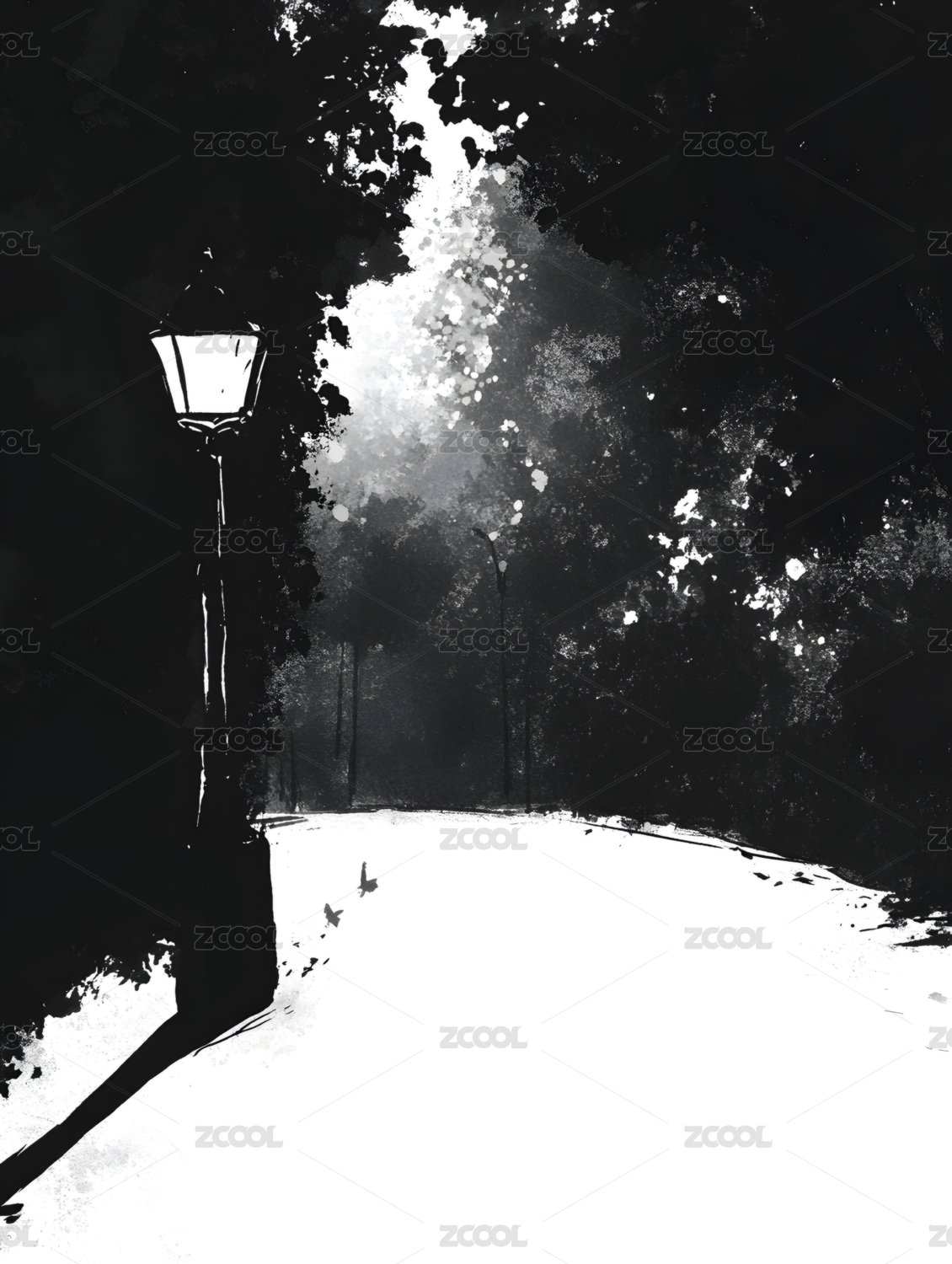 夜色中的孤独路灯