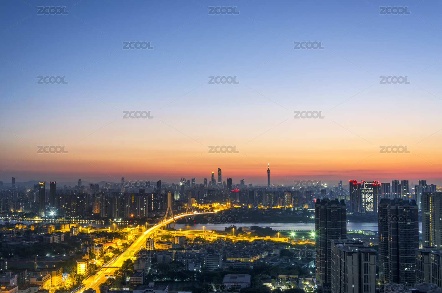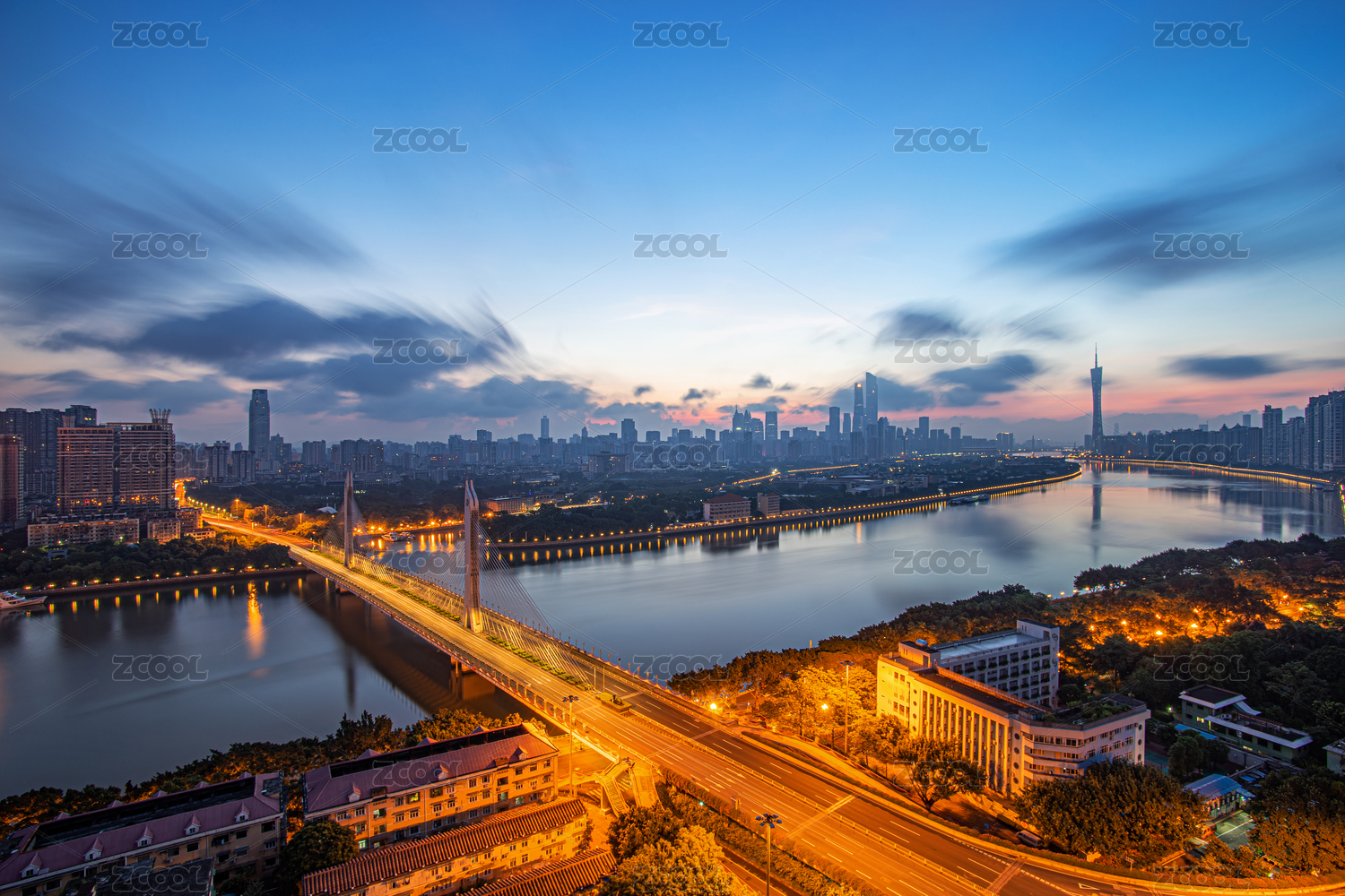 广州珠江两岸景观与城市天际线日出