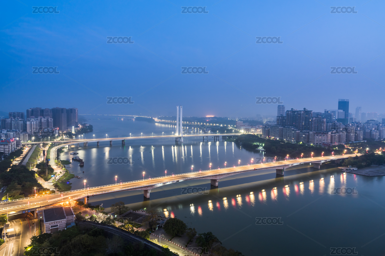 武汉长江二桥晚霞灯光夜景