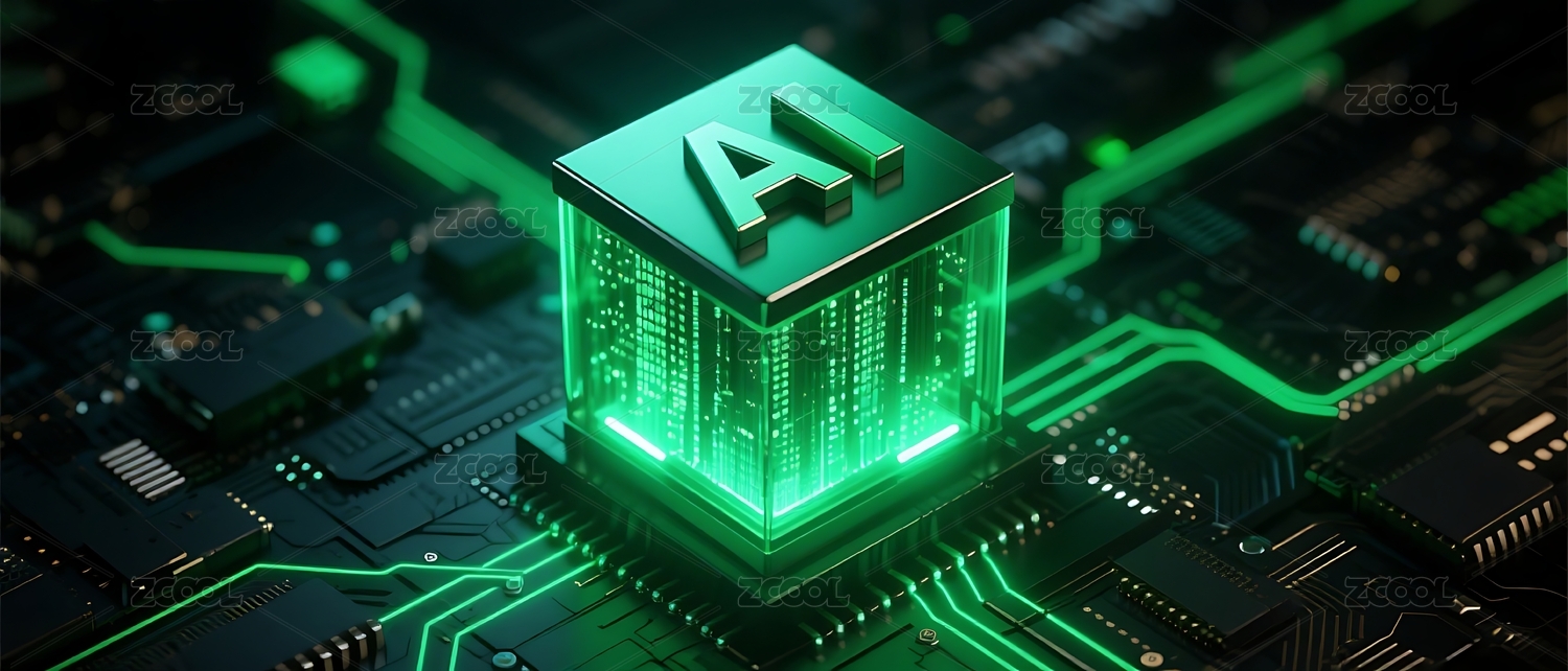 电路板,芯片,数字,数据流,绿色,线路,光束,插图,渐变,动感