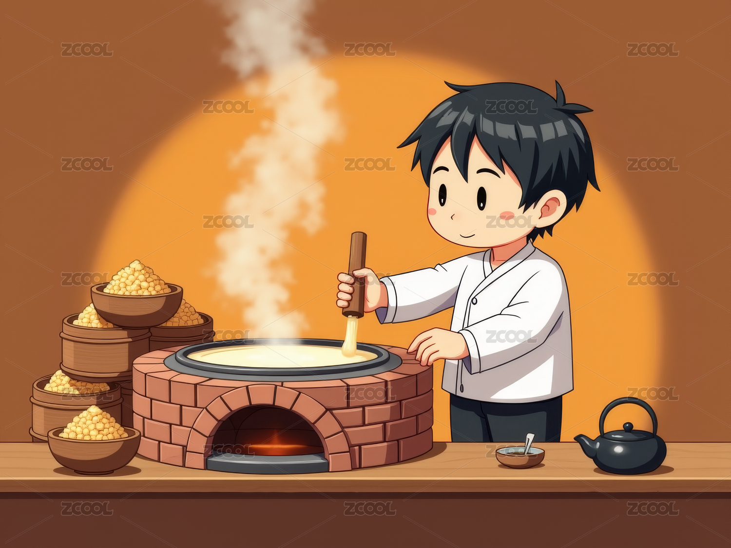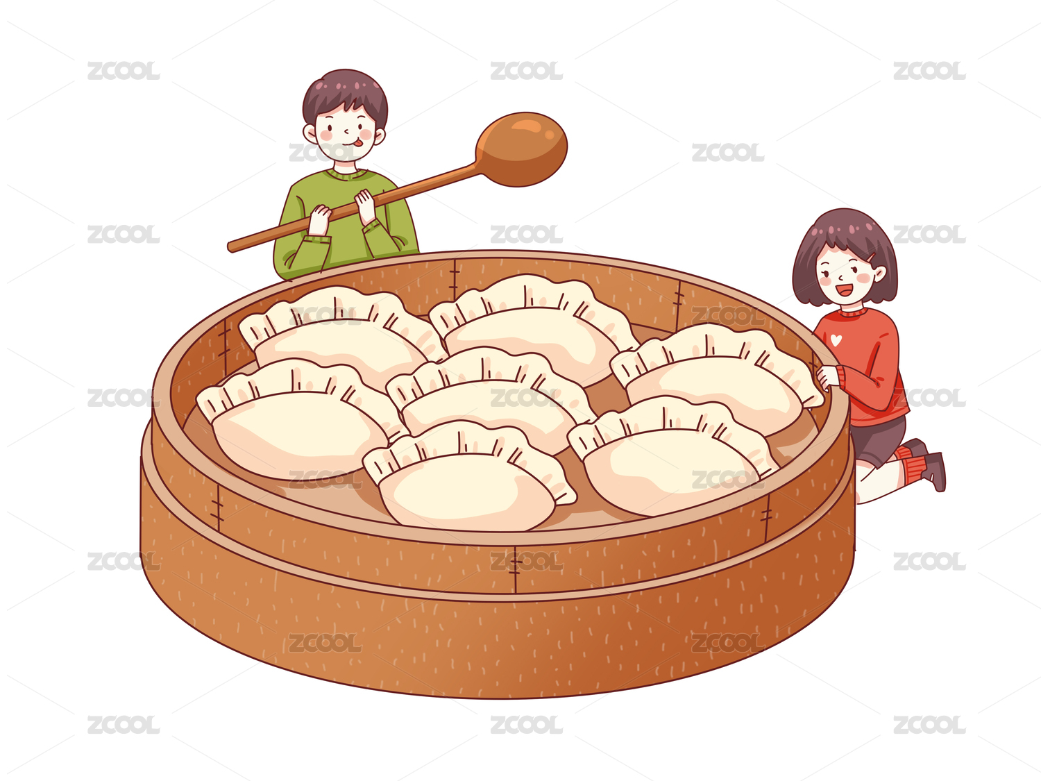 小雪人们做美食爸爸妈妈孩子家庭父母蒸笼