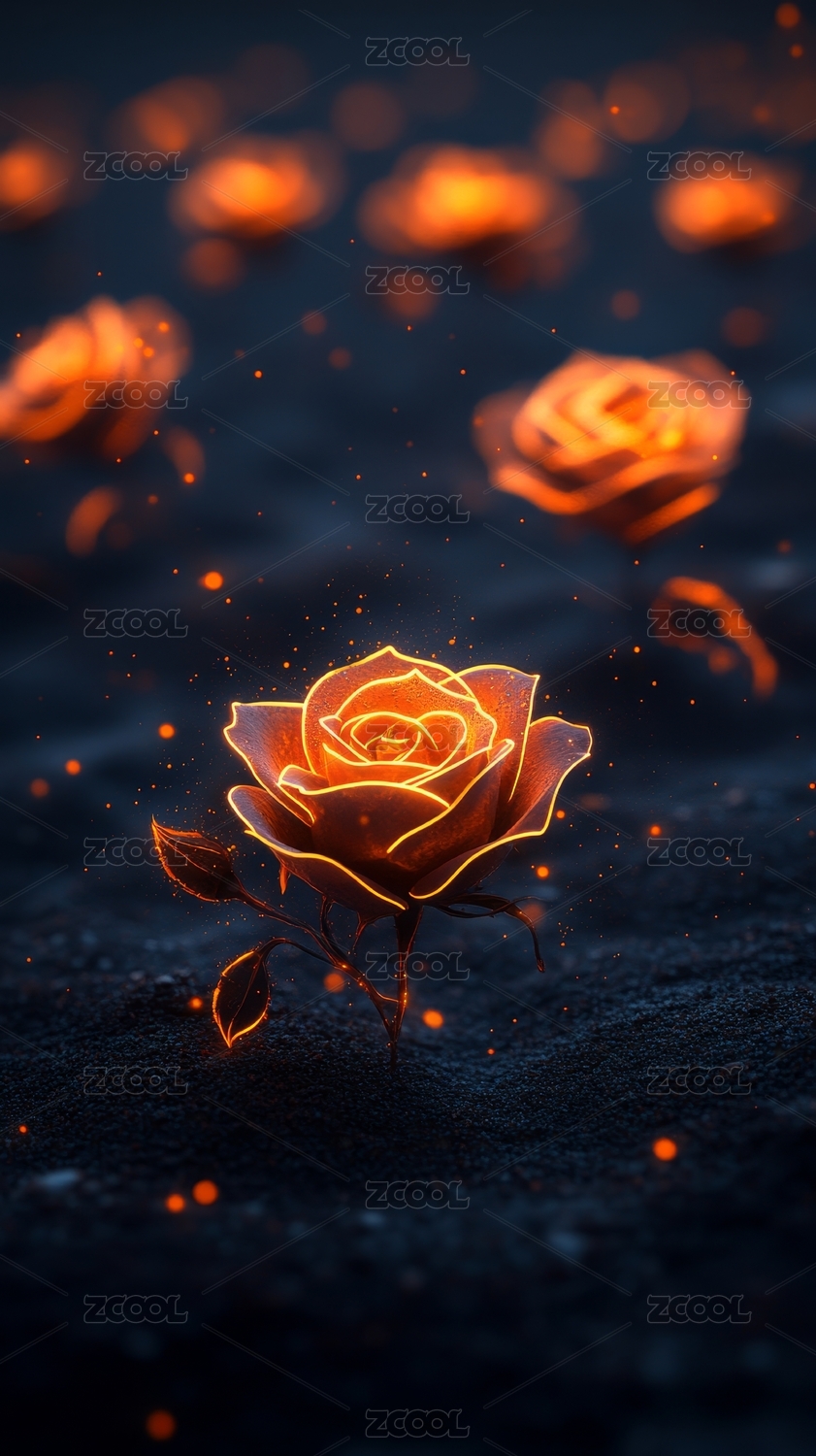 玫瑰,火焰,彩虹,蓝色,红色,光效,粒子,火花,梦幻,奇幻