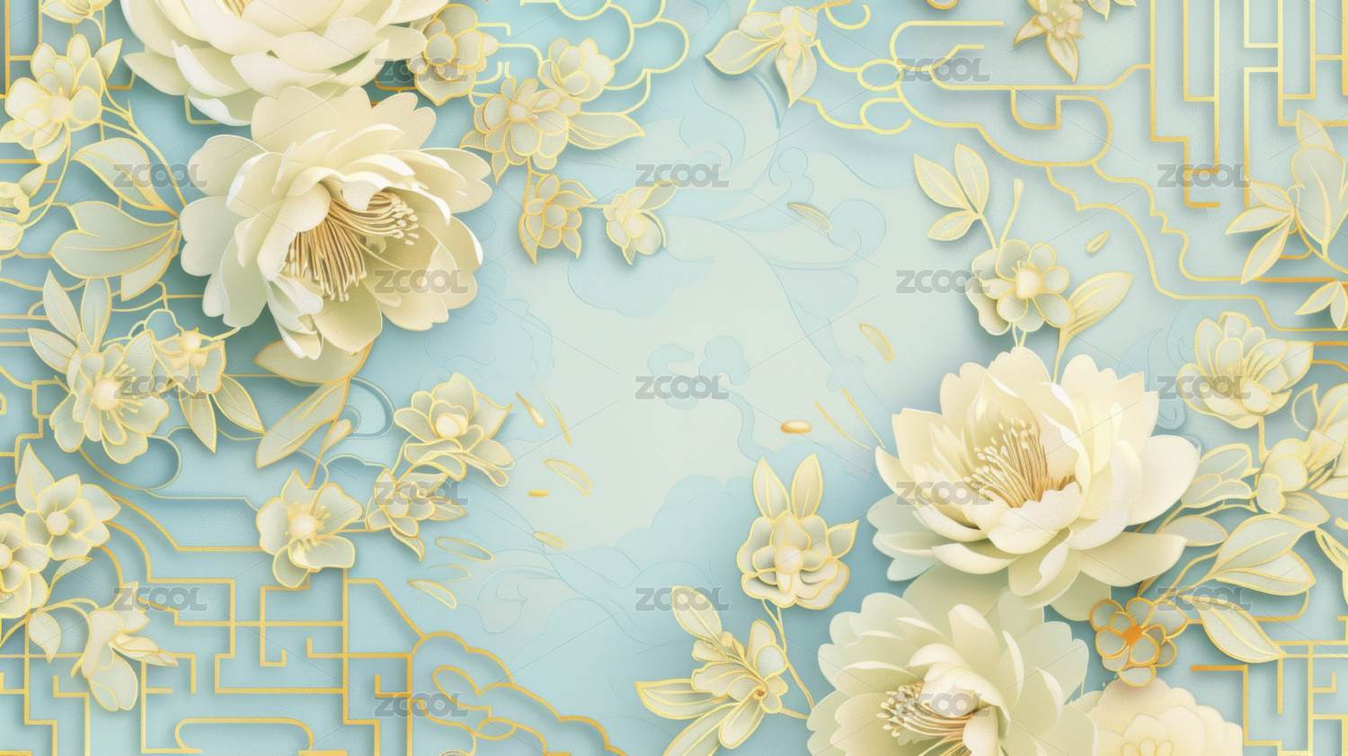 中国风,牡丹花,花,背景,节日,金色,蓝色