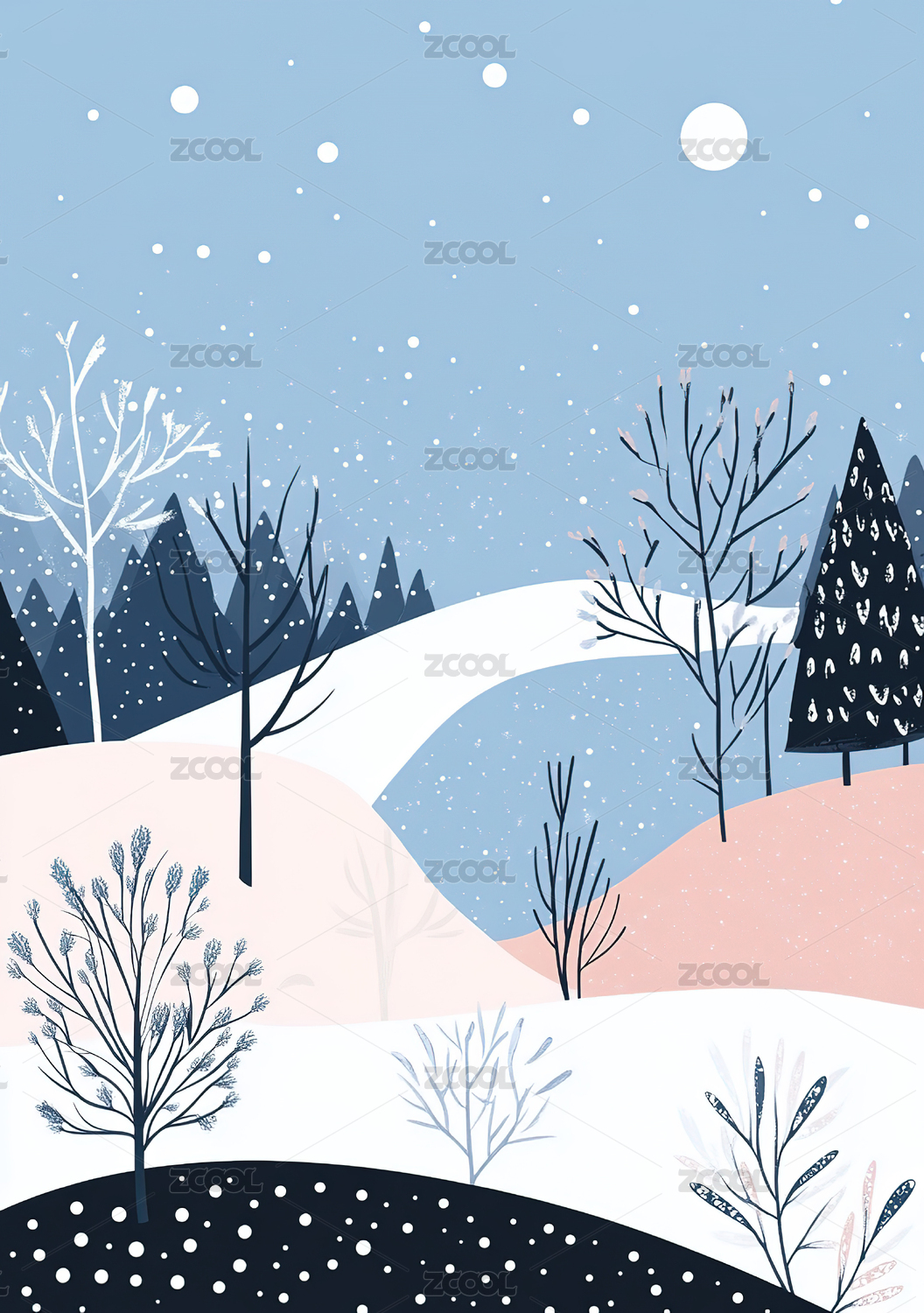 蓝白色乡村小镇风景油画抽象海报背景装饰画