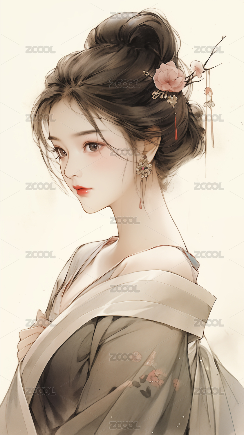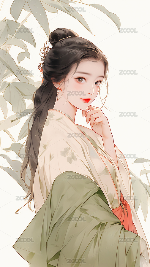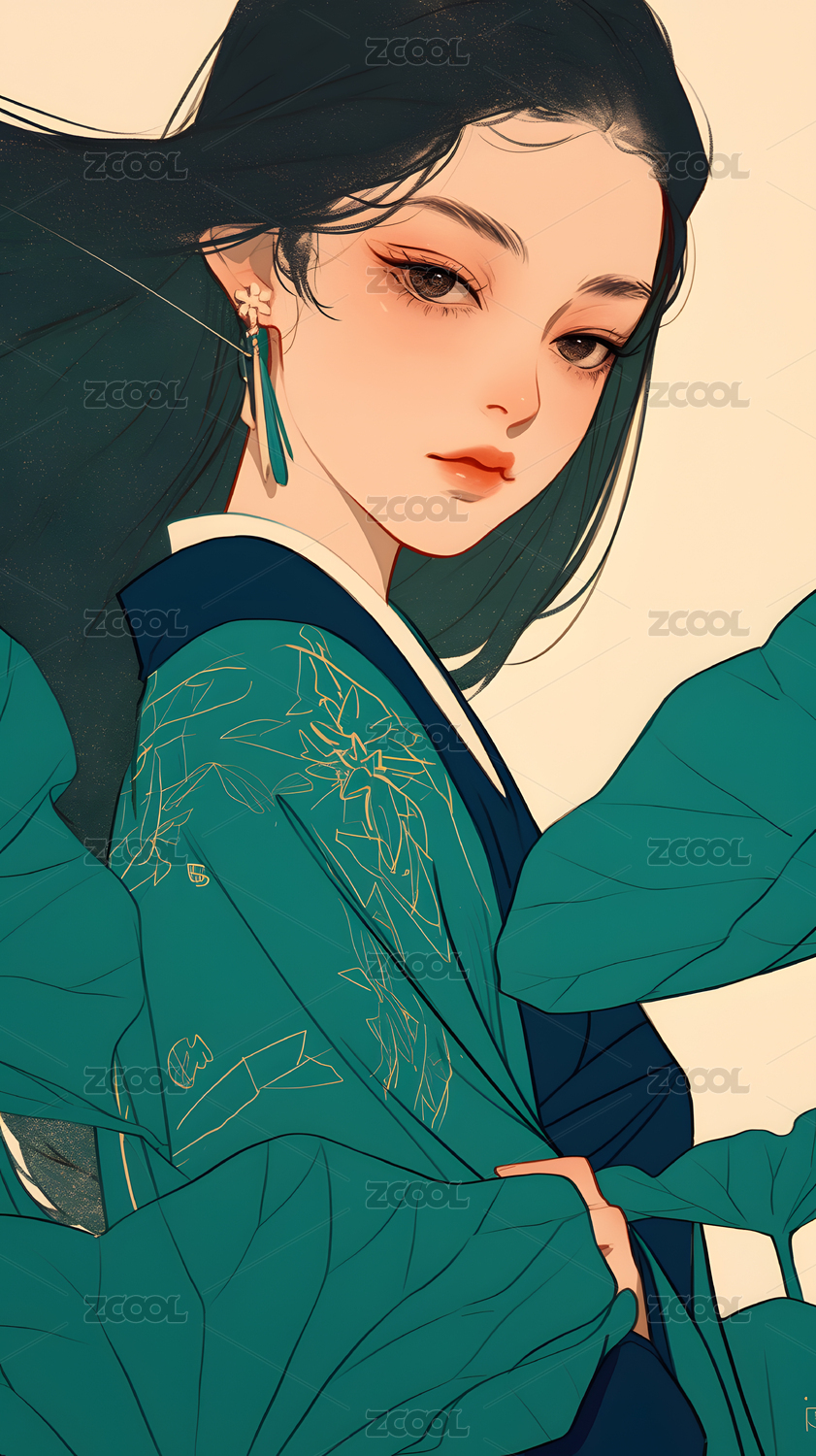 国潮,国风,汉服,女孩,漂亮,古装,人物,元素,插画,简洁