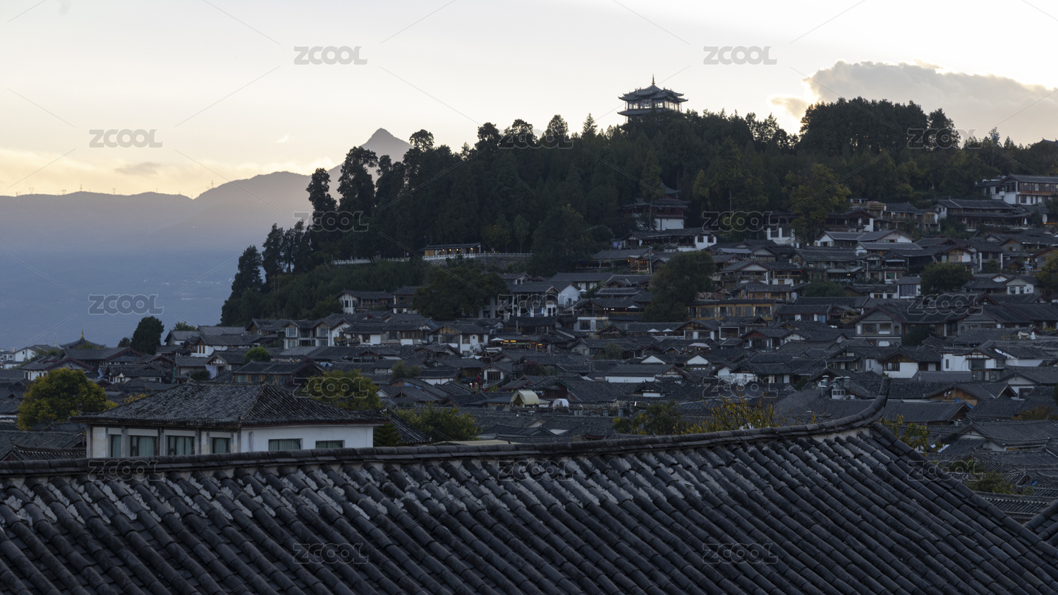 框架构图,丽江古城,云,瑰丽,沉醉,房顶,远望,户外,无人,横构图