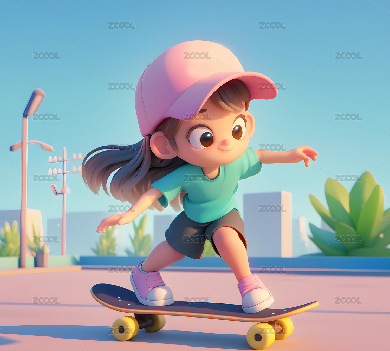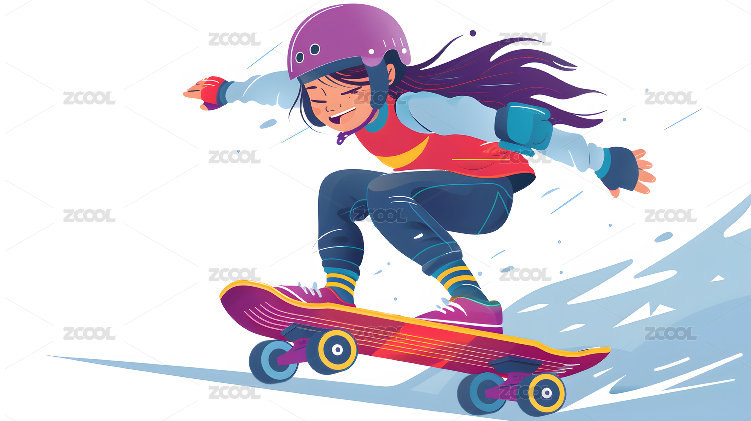 玩轮滑,卡通,插画,轮滑,女人,女孩,滑冰,人,运动,动作