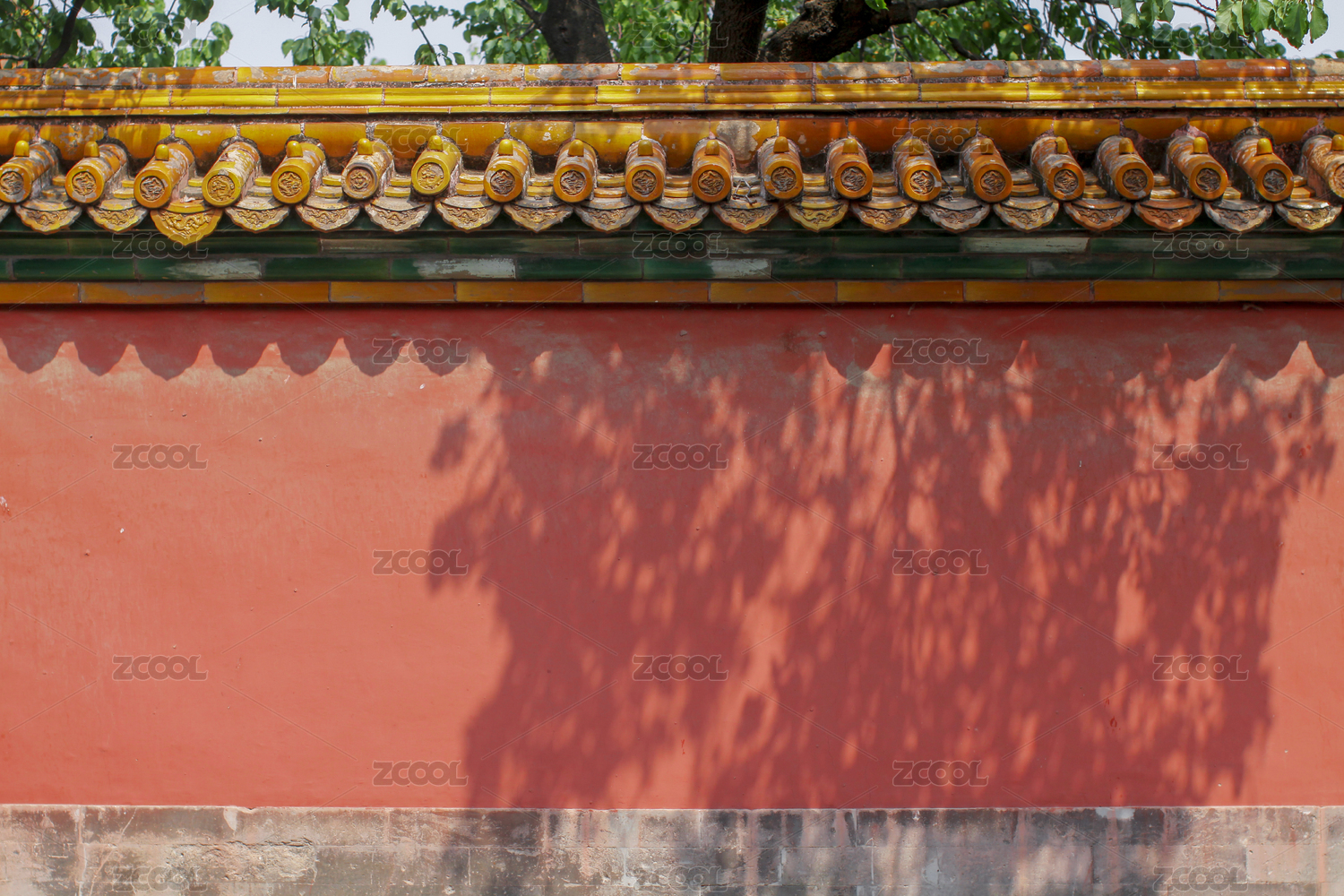 北京故宫红墙上映着树影