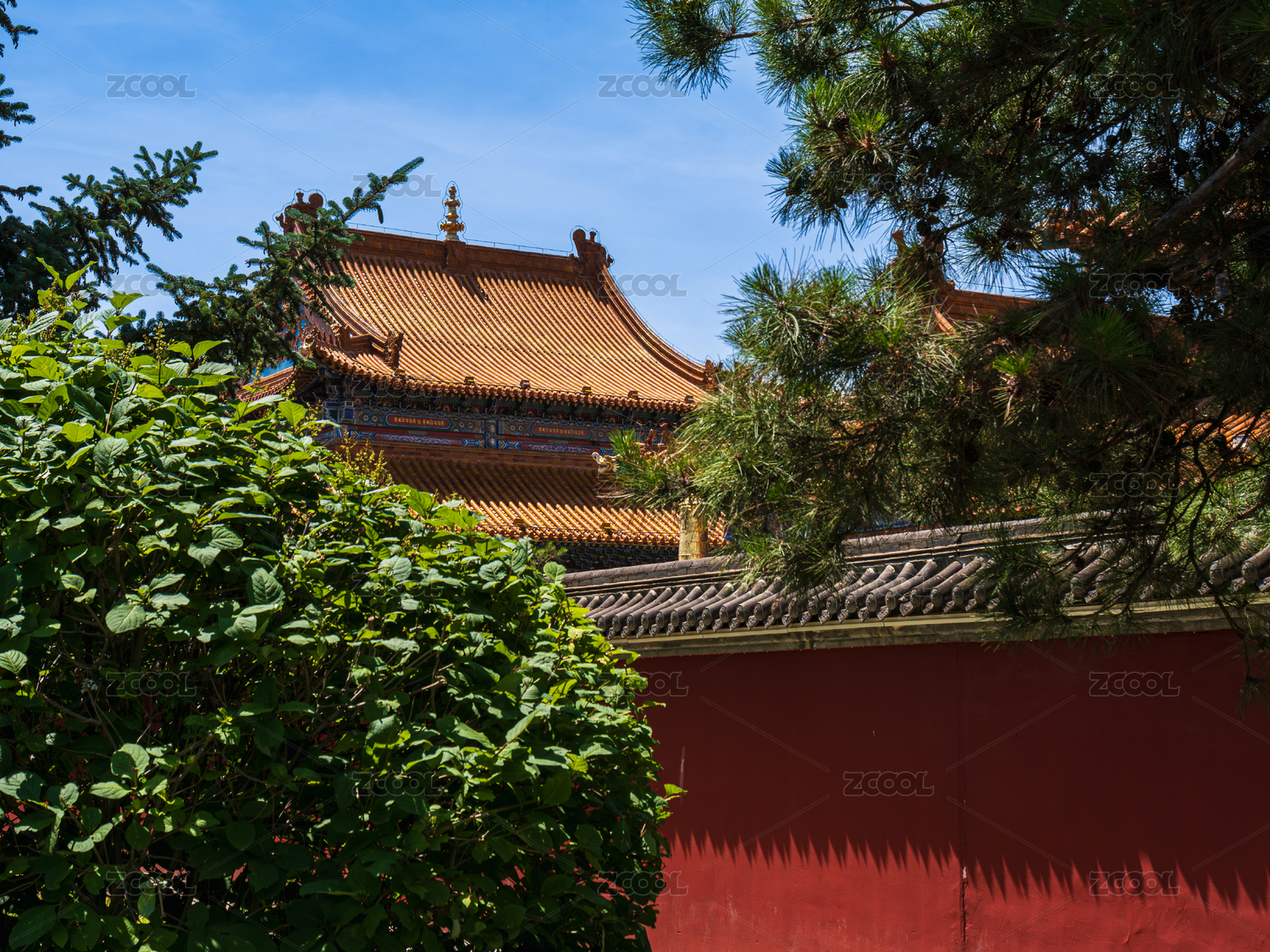 红墙绿瓦古建筑