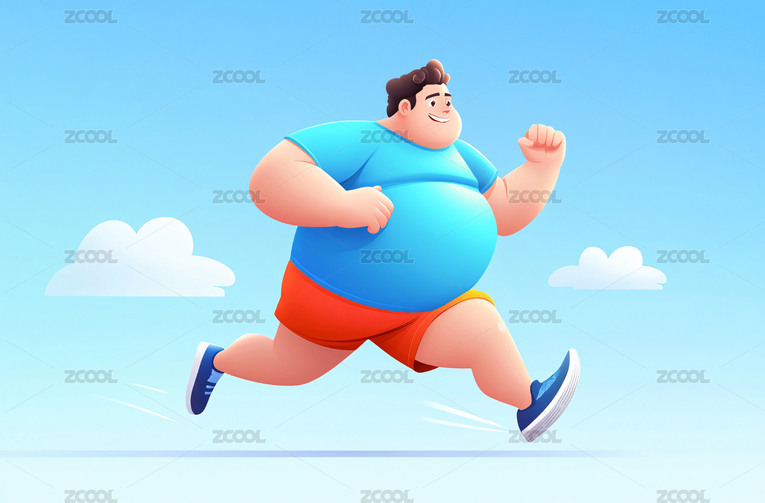 肥胖人物夏日健身跑步运动减肥锻炼概念插图