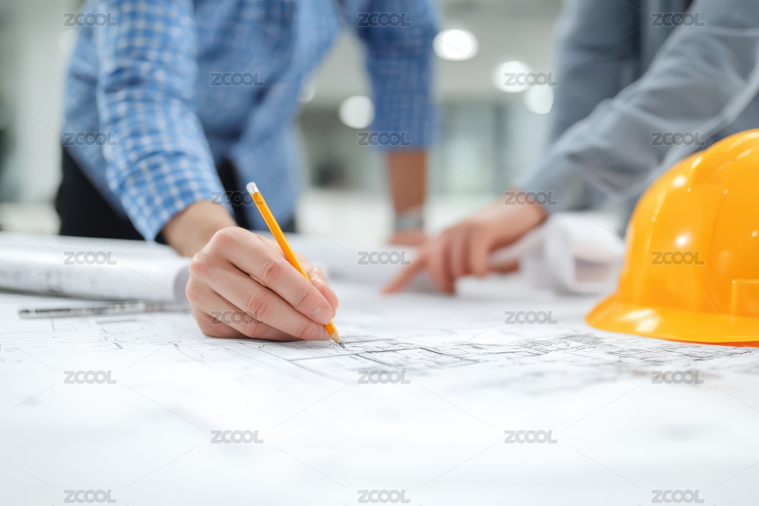 设计师正在画施工图纸,室内设计概念