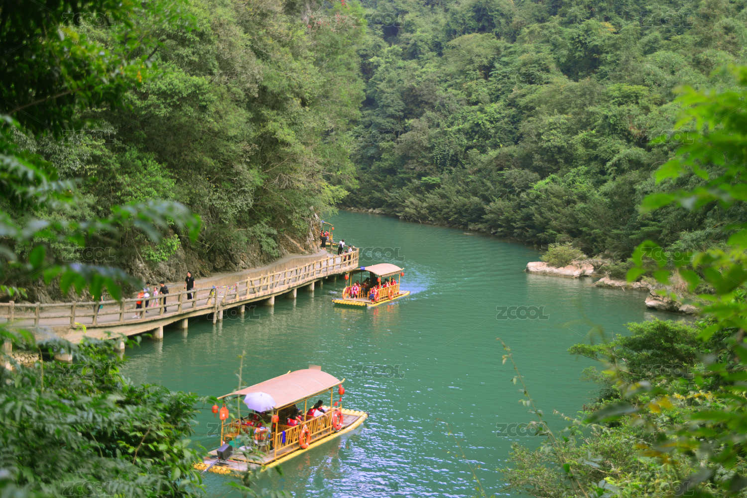 贵州荔波大七孔 恐怖峡峡谷水春河上的游船码头