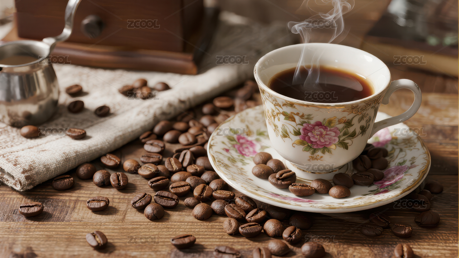 黑咖啡,咖啡磨,咖啡豆,鲜花,小雏菊,春天,下午茶