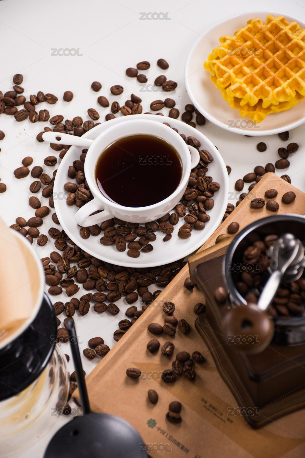 挂耳咖啡,咖啡杯,饼干,咖啡豆,咖啡粉泡沫,油脂,手冲壶,热水,倒水,冲泡