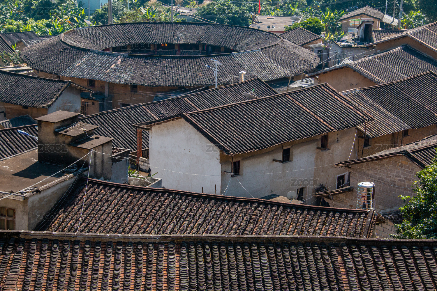 福建省龙岩市永定区下洋镇初溪村土楼群建筑景观