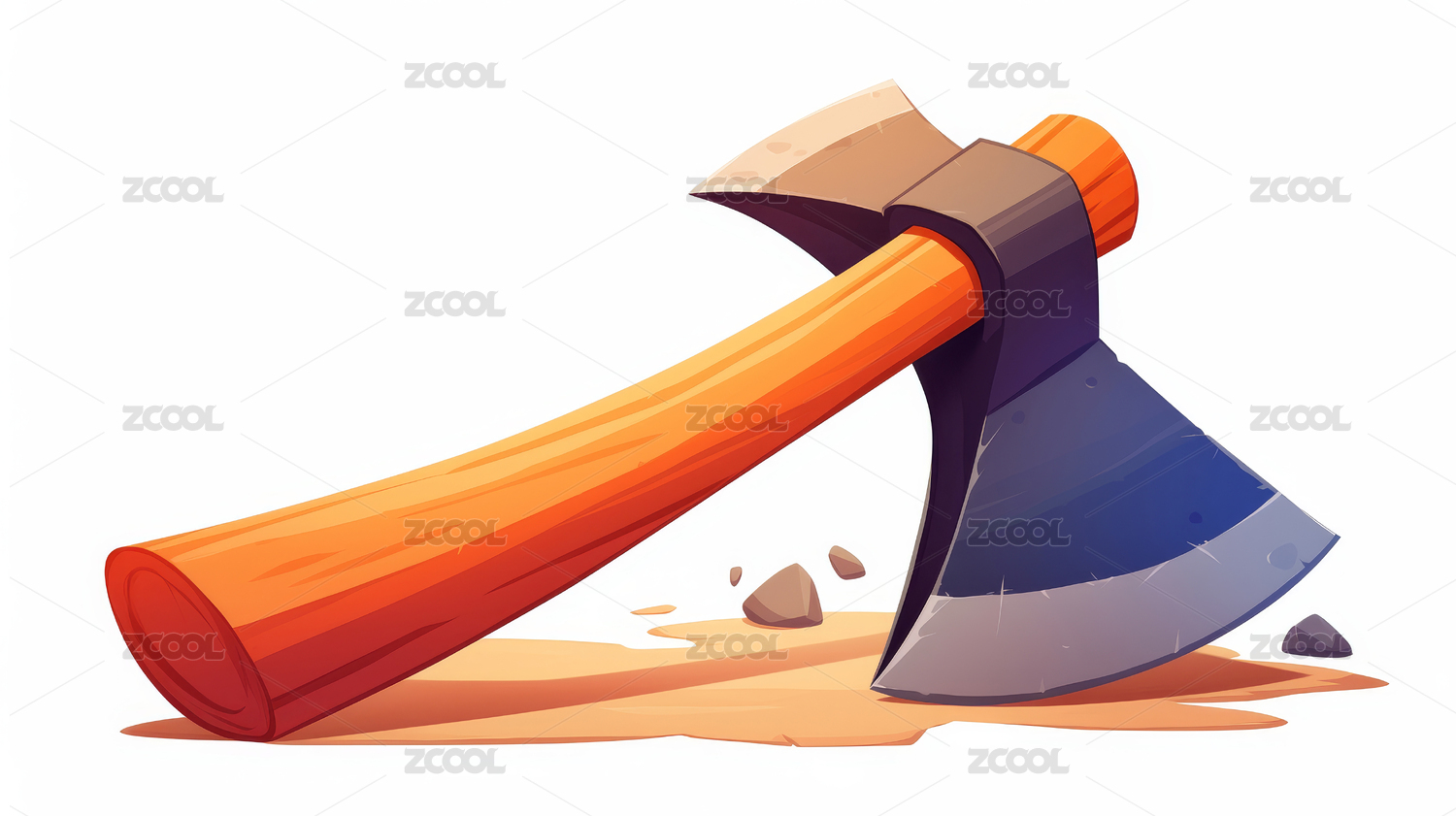 古董,复古,手绘,木柄,卡通,素材,道具,金属,锈迹,战斧