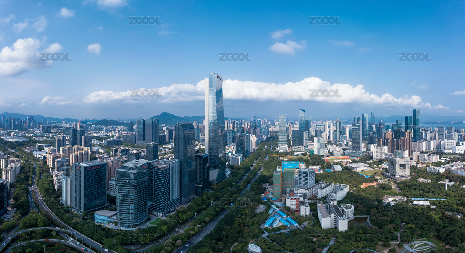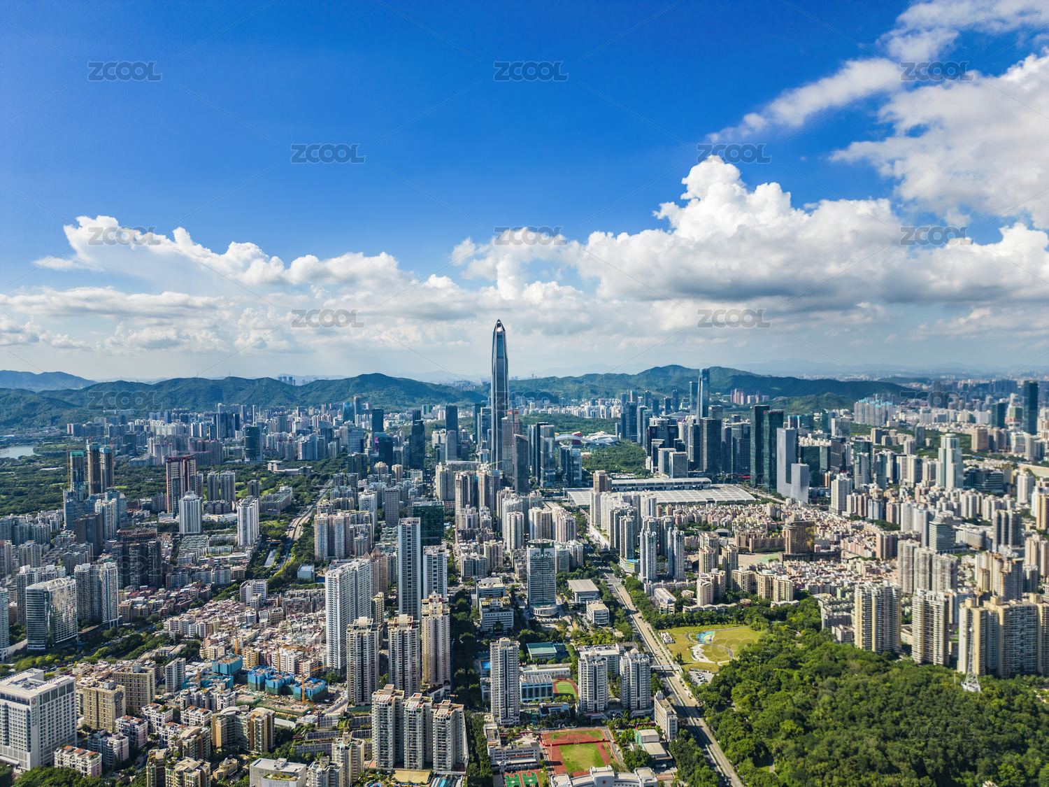 中国广东深圳莲花山公园和福田CBD中轴线城市风光