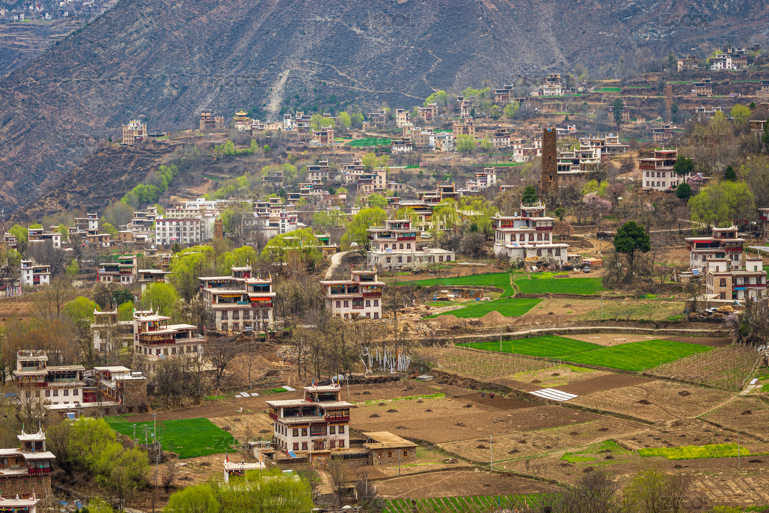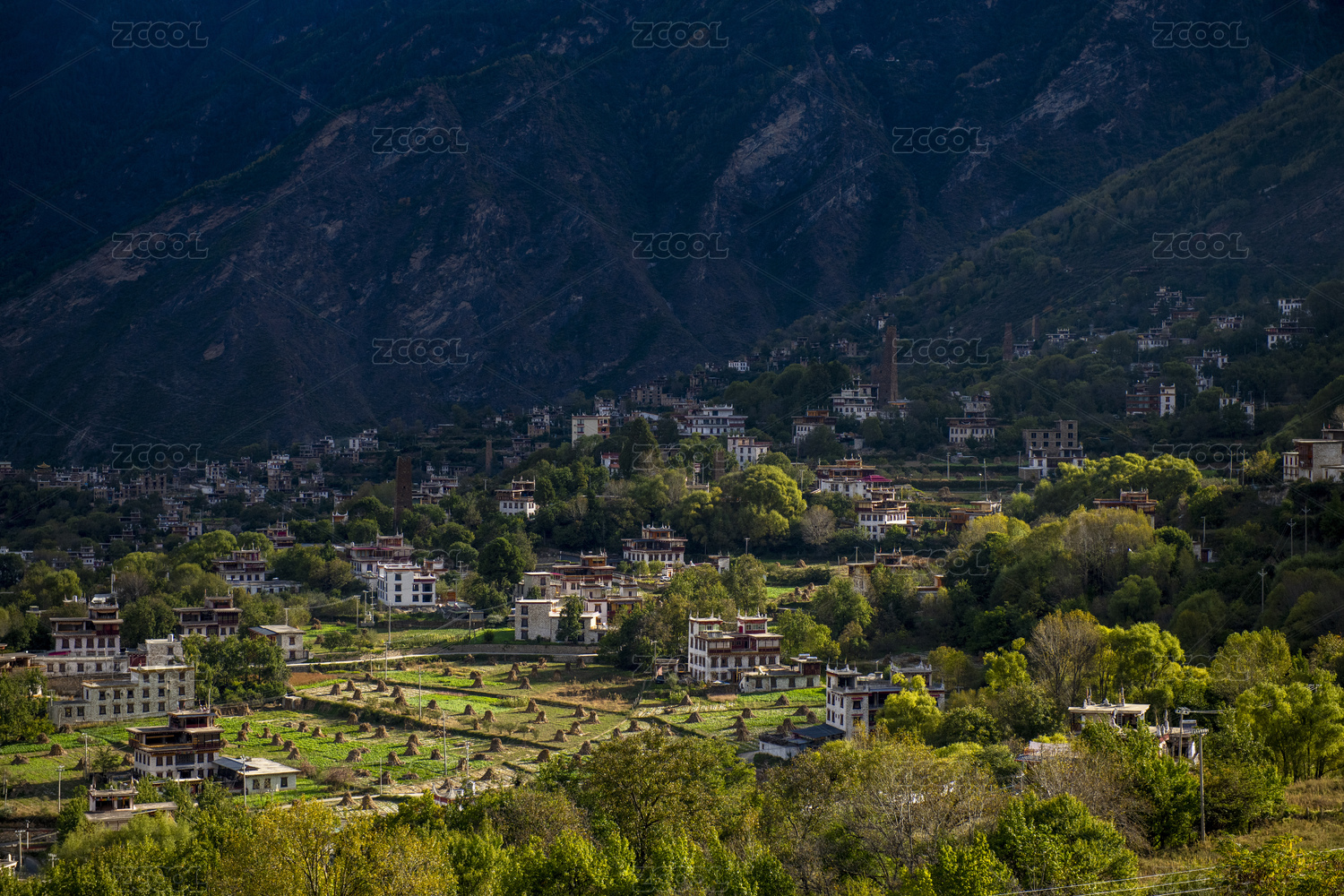 四川省丹巴县中路乡风光和藏寨建筑风格