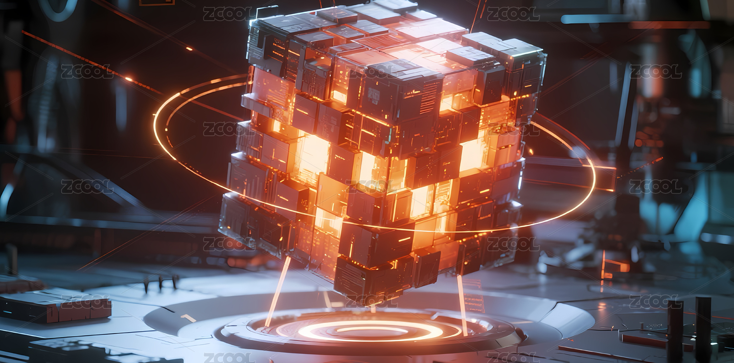 AI科技磨砂玻璃全息图魔方立方体大模型