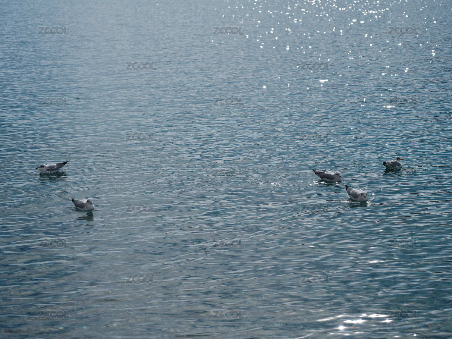 晴天午间海湾水面飞翔捕食的海鸥