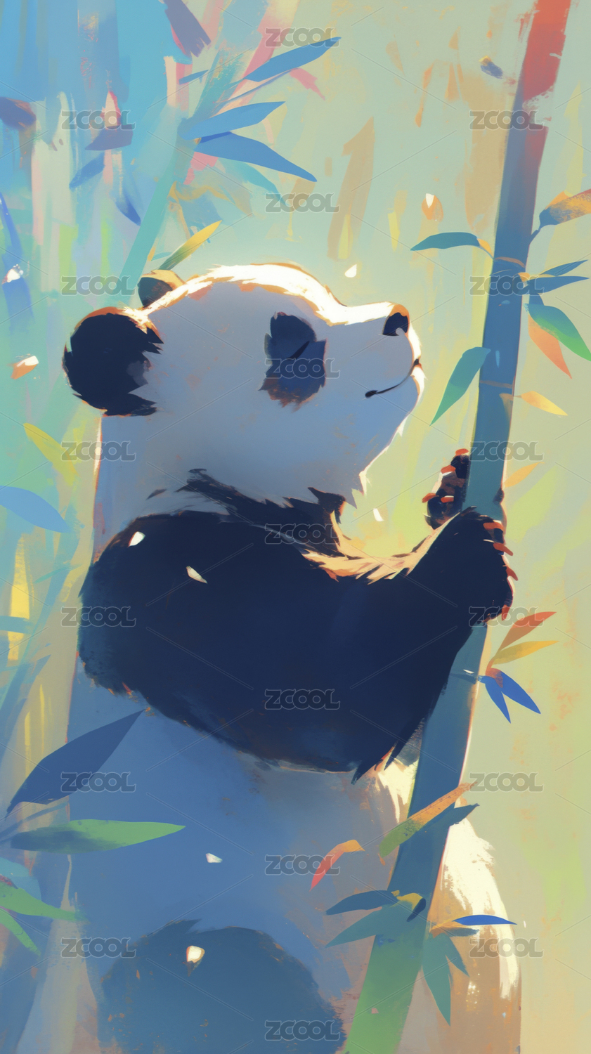 竹子竹林中的熊猫卡通插画