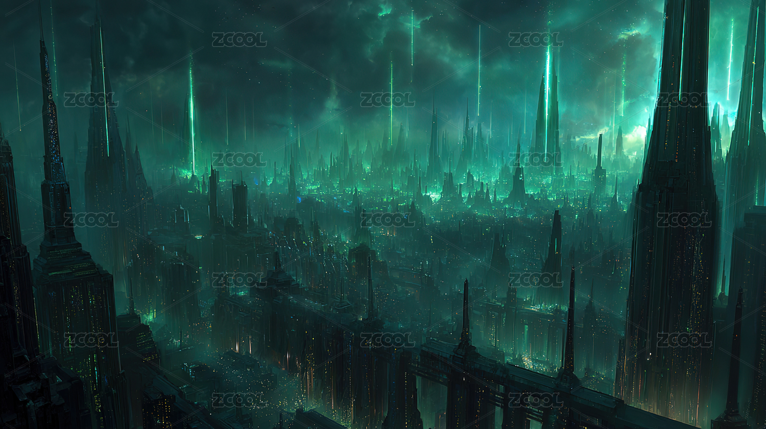 摩天大楼,建筑,城市,未来,发光,概念,天空,商务,互联网,数据