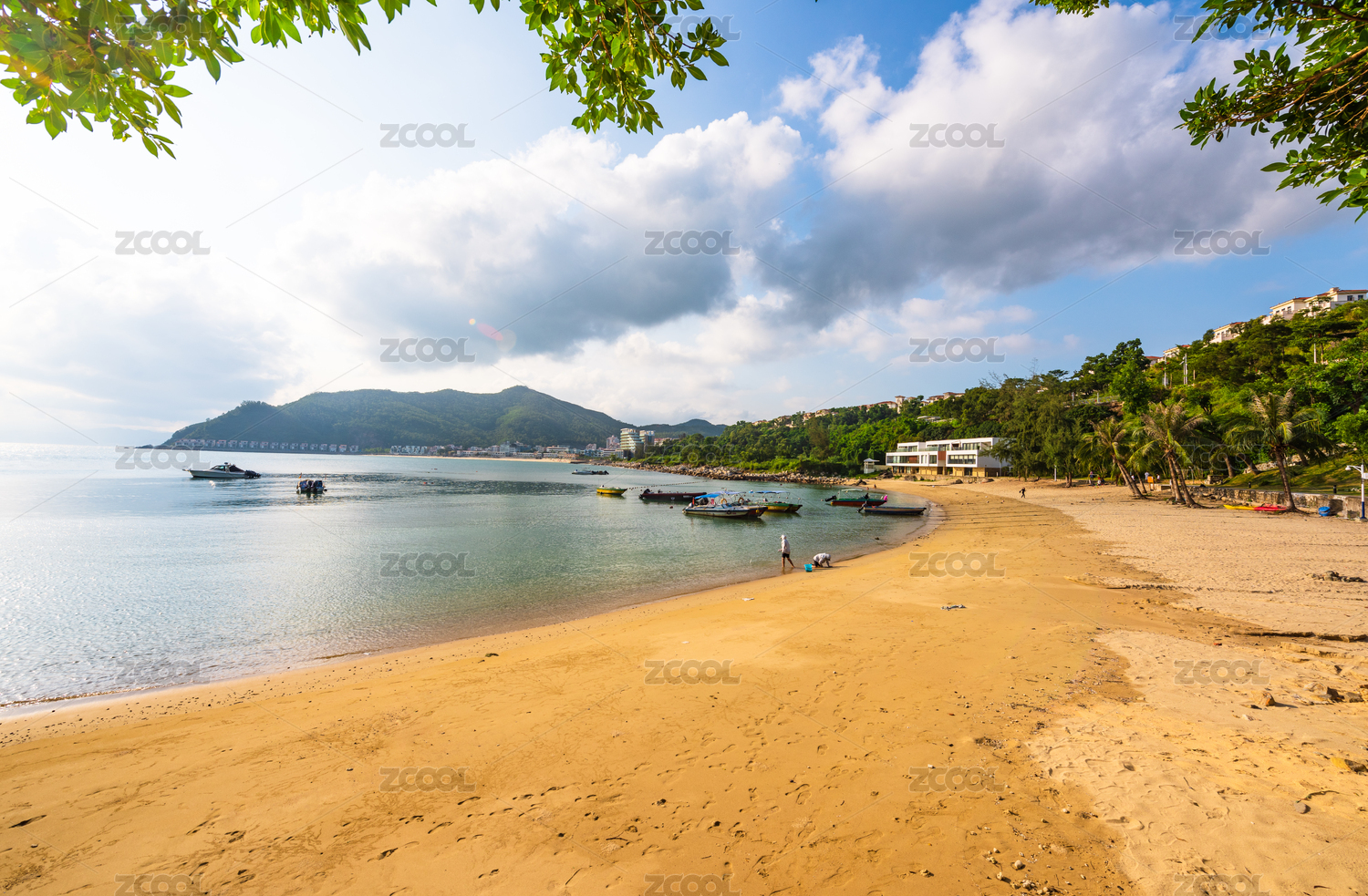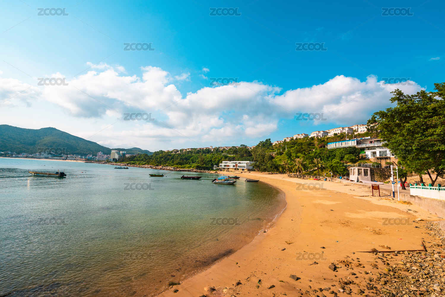 蔚蓝,白云,亚洲,深圳,细沙,沙滩,南澳,海水,海滨,海岸