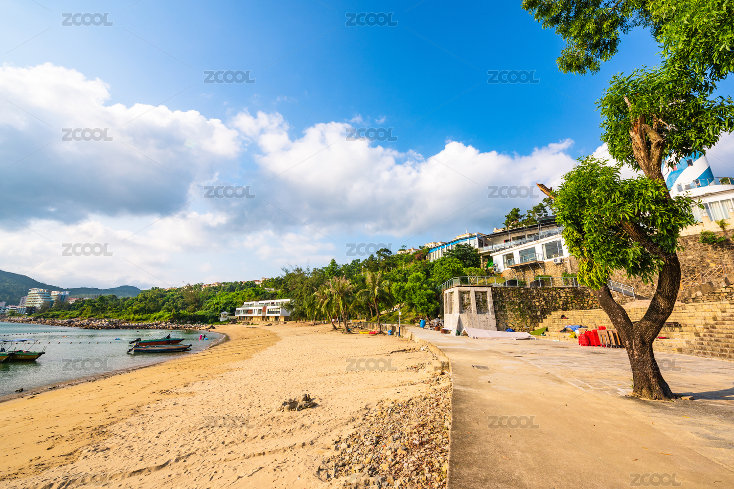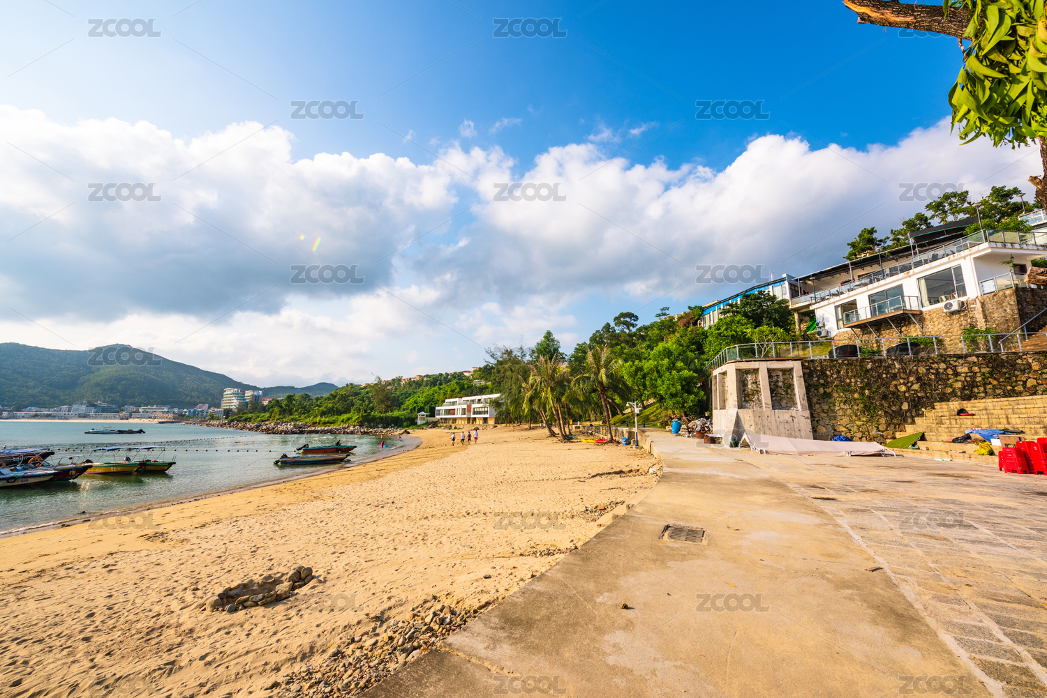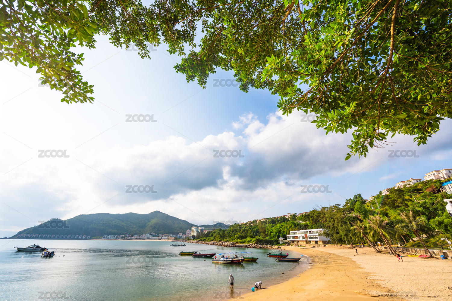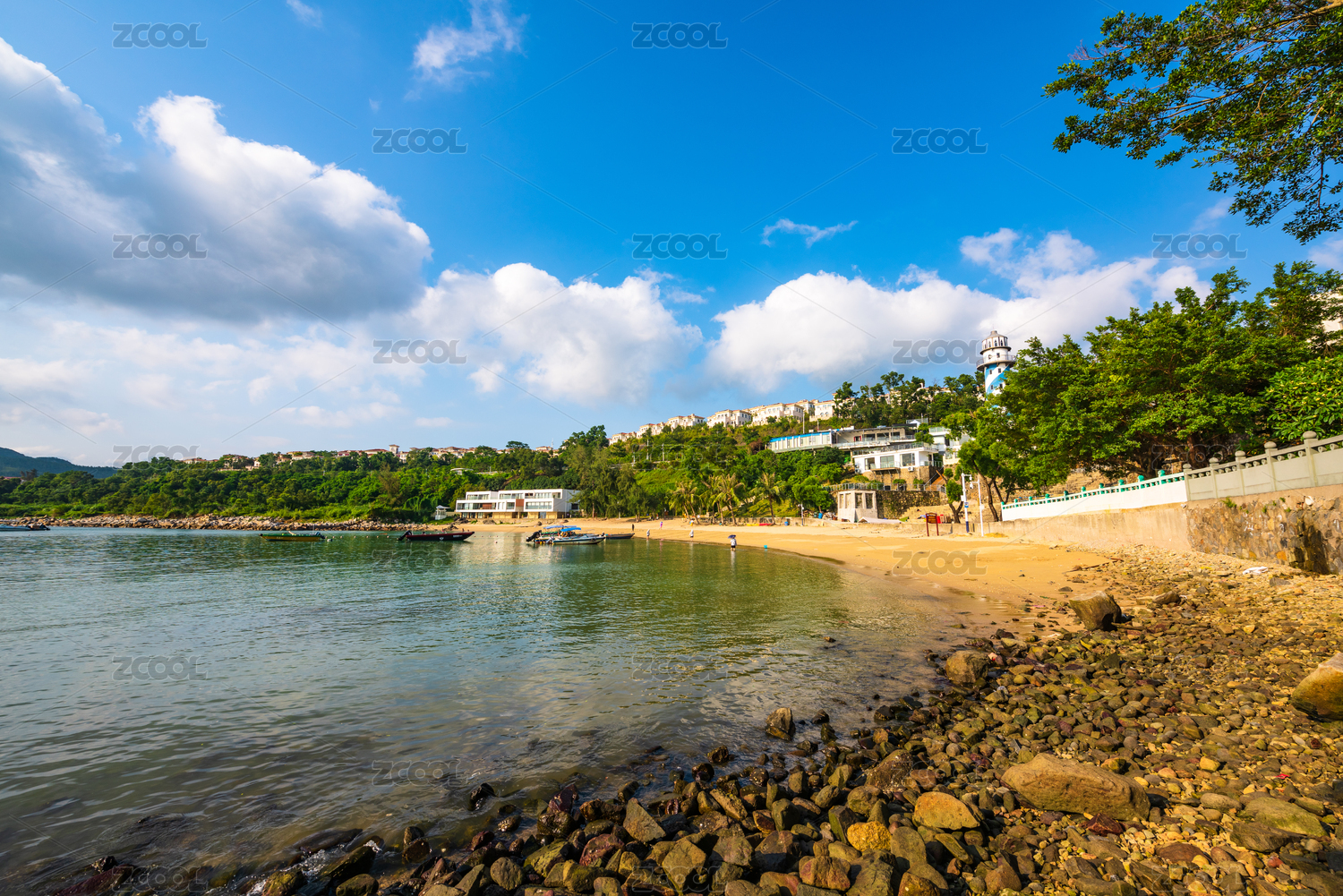 中国深圳南澳海贝湾夏日午后的蓝天白云海景