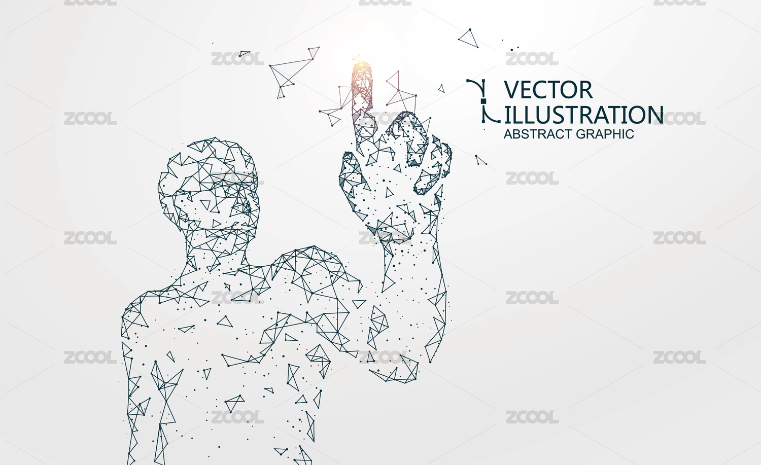 虚拟的手指点击线条连接而成的网络,科技感插图。