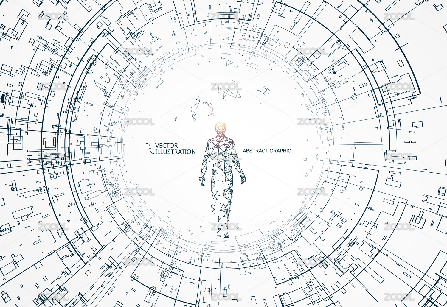 线条连接而成的科幻场景,象征着人工智能的意义。