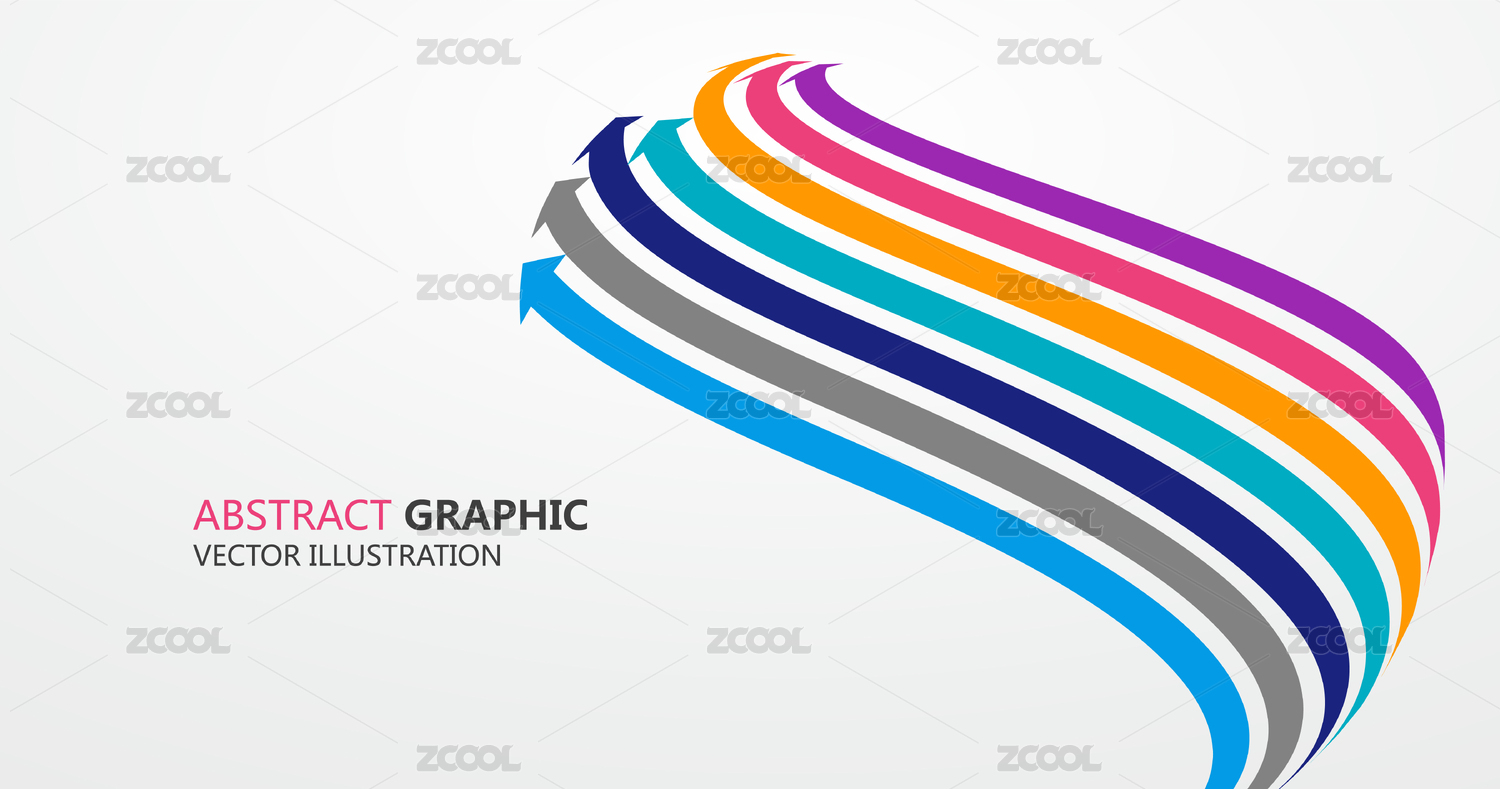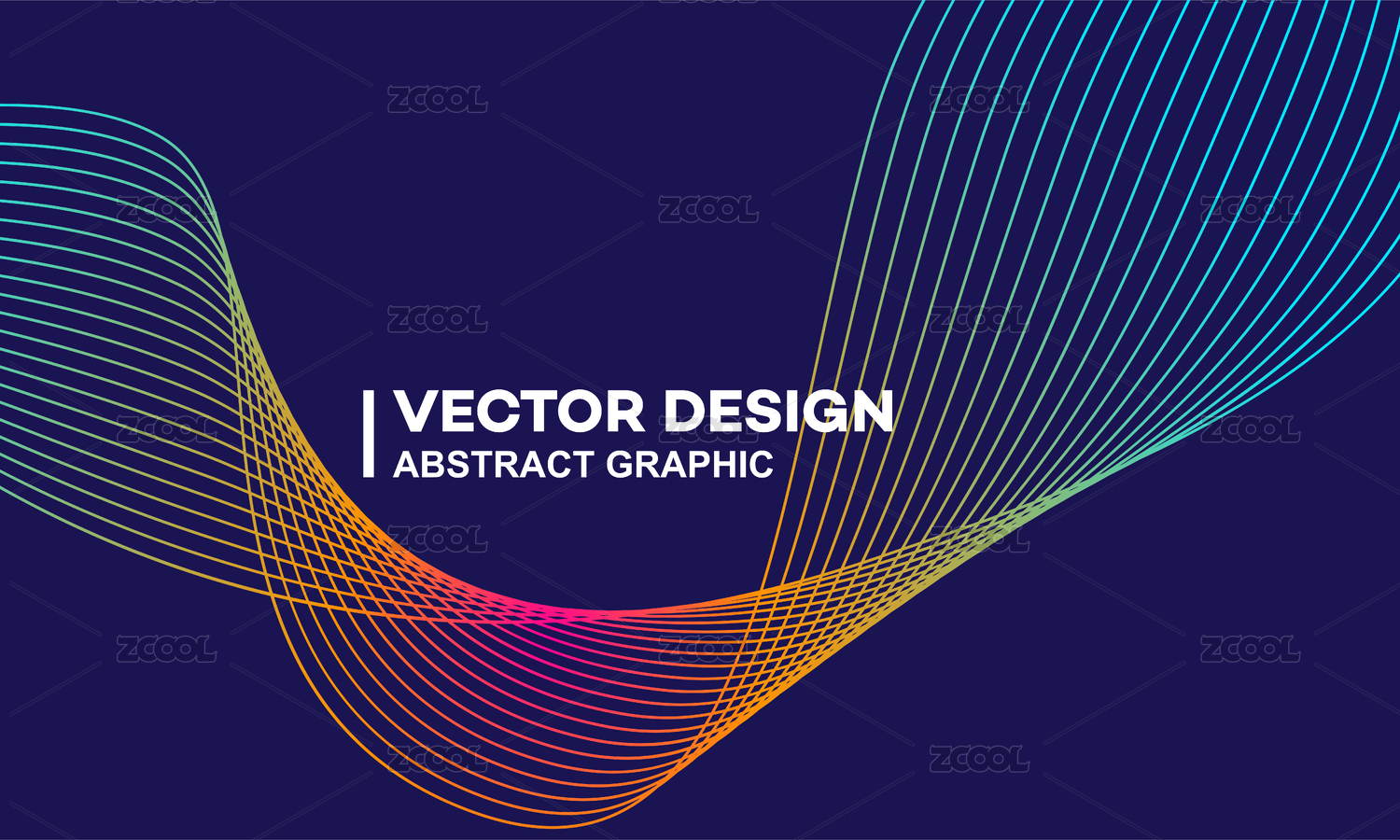 彩色动感线条、透视图形、彩色丝带、矢量流线图、海报背景图。