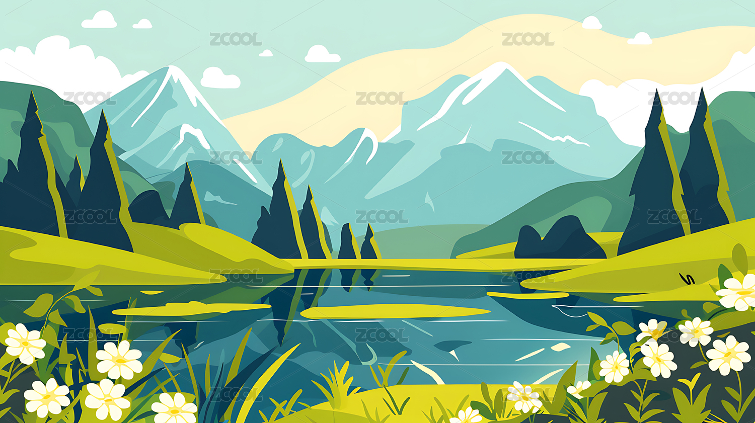 自然,天空,风景,户外,AI数字艺术,插画,云,夏天,花,自然美