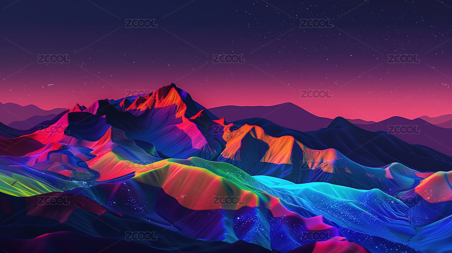 低面多边形荧光色山峰山脉群山3D立体插画