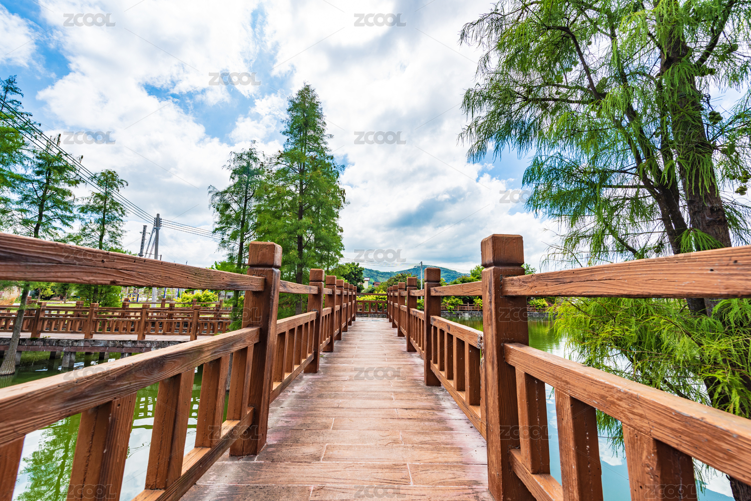广东清远佛冈县上岳古村蓝天白云下的池塘
