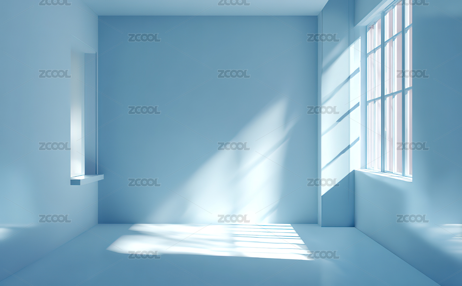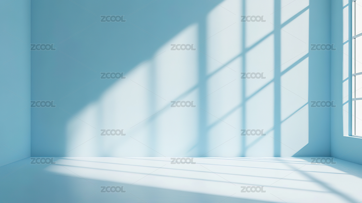 空旷蓝色房间光影效果