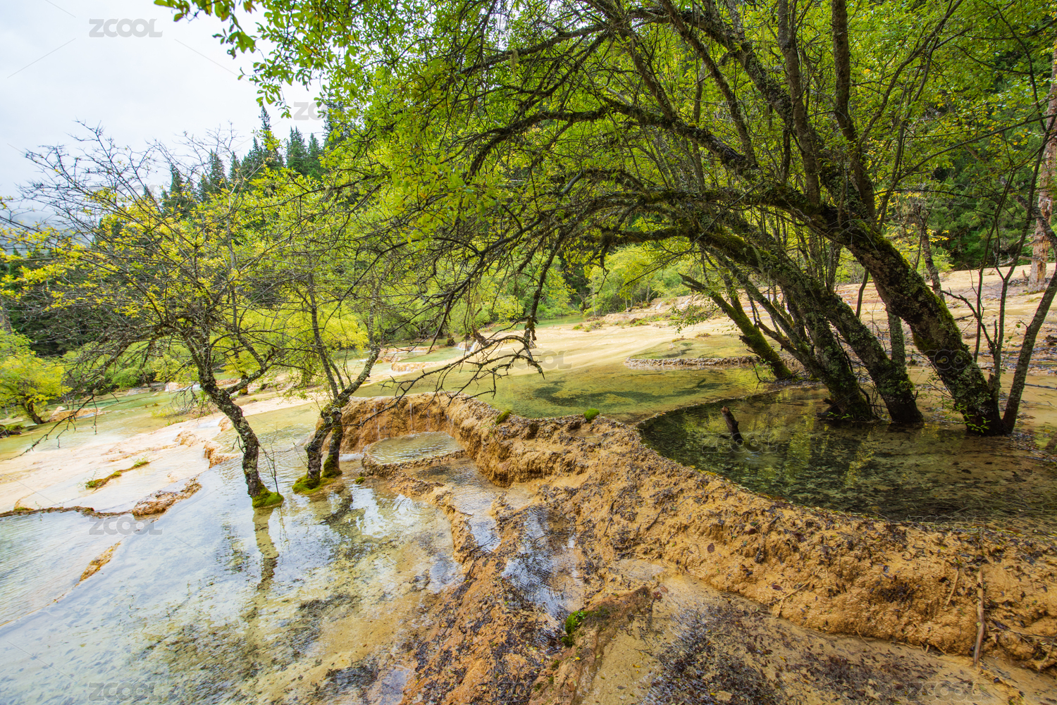 四川阿坝州九寨沟-植物溪流的特写镜头