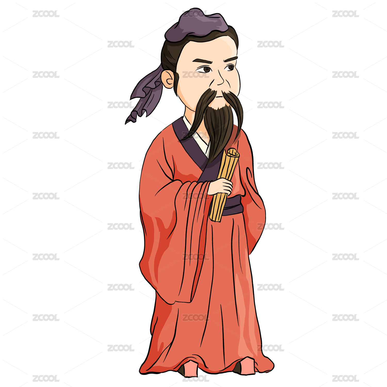 古代人物荀子手拿竹简,手绘插画